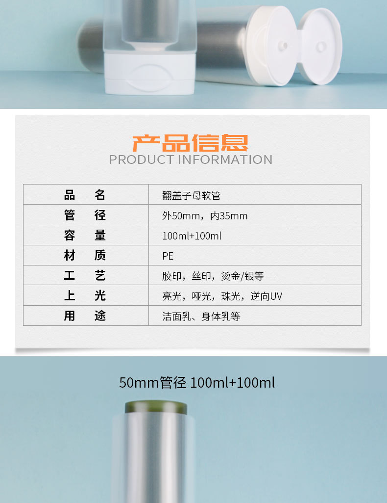 200ml Double-Layer Tube for Facial Cleanser Packaging, Tube-In-Tube Oval Flip-Top Cosmetic Hair Dye Packaging Soft Tube