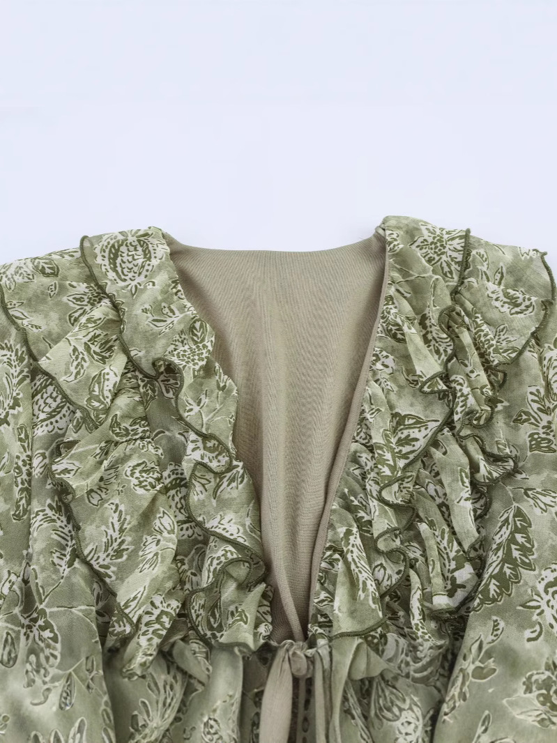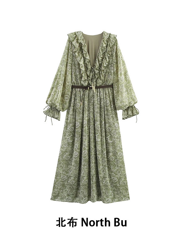 European and American workshop foreign trade women's new ZA fashion laminated decorative printing dress 5029057