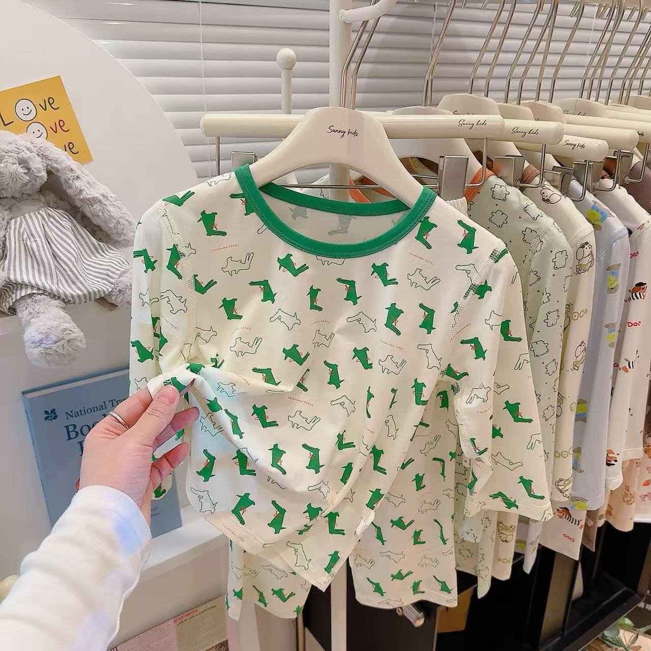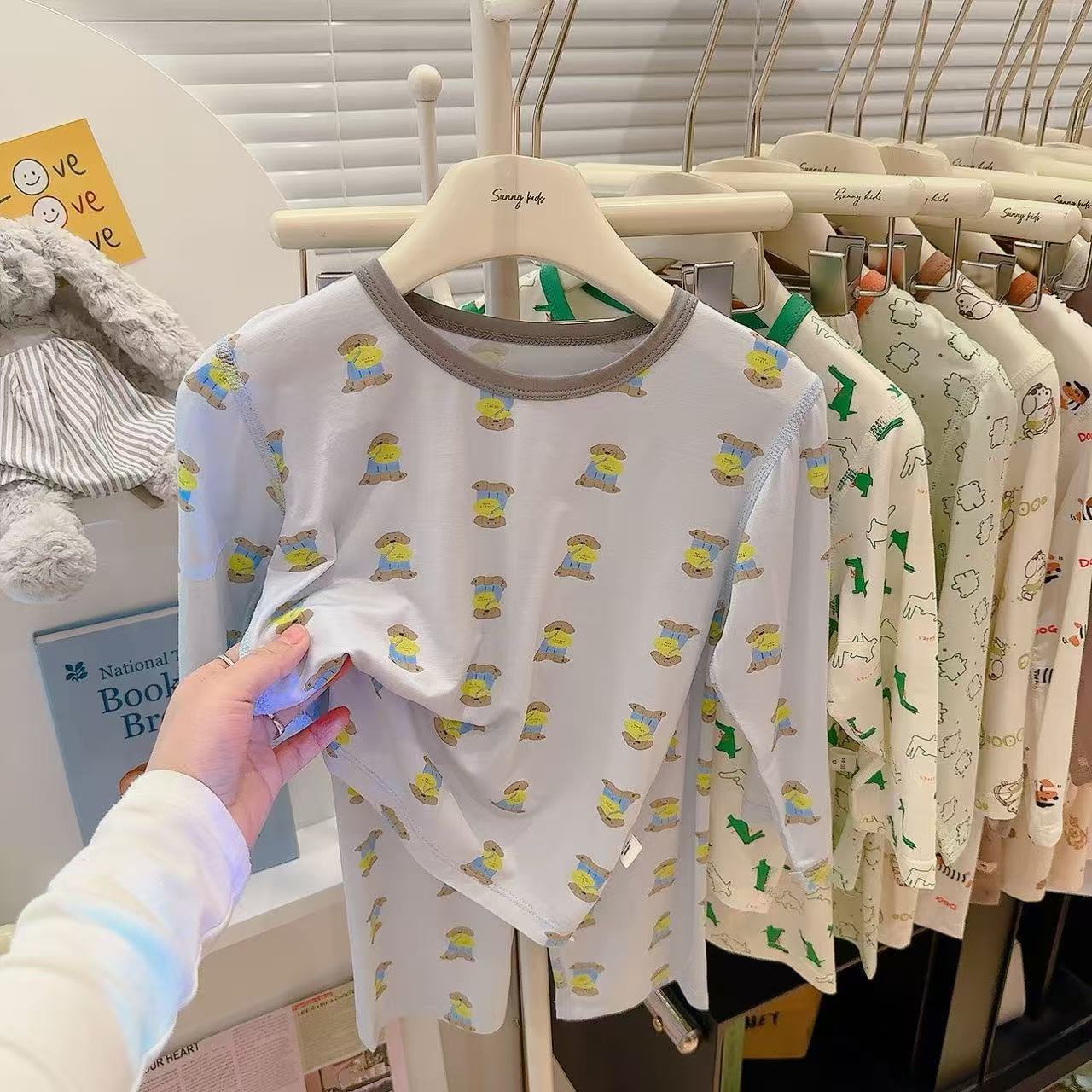 Tencel three-point set-green cookie bear