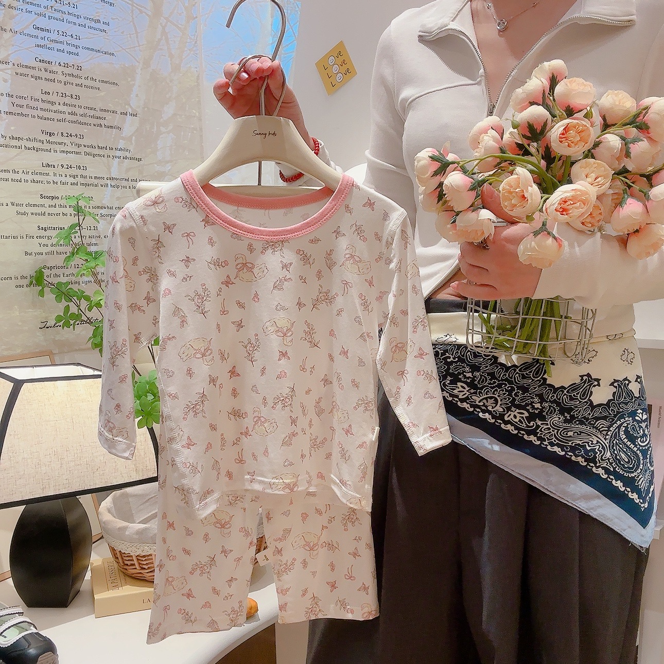 Tencel three-point suit-flower bunny