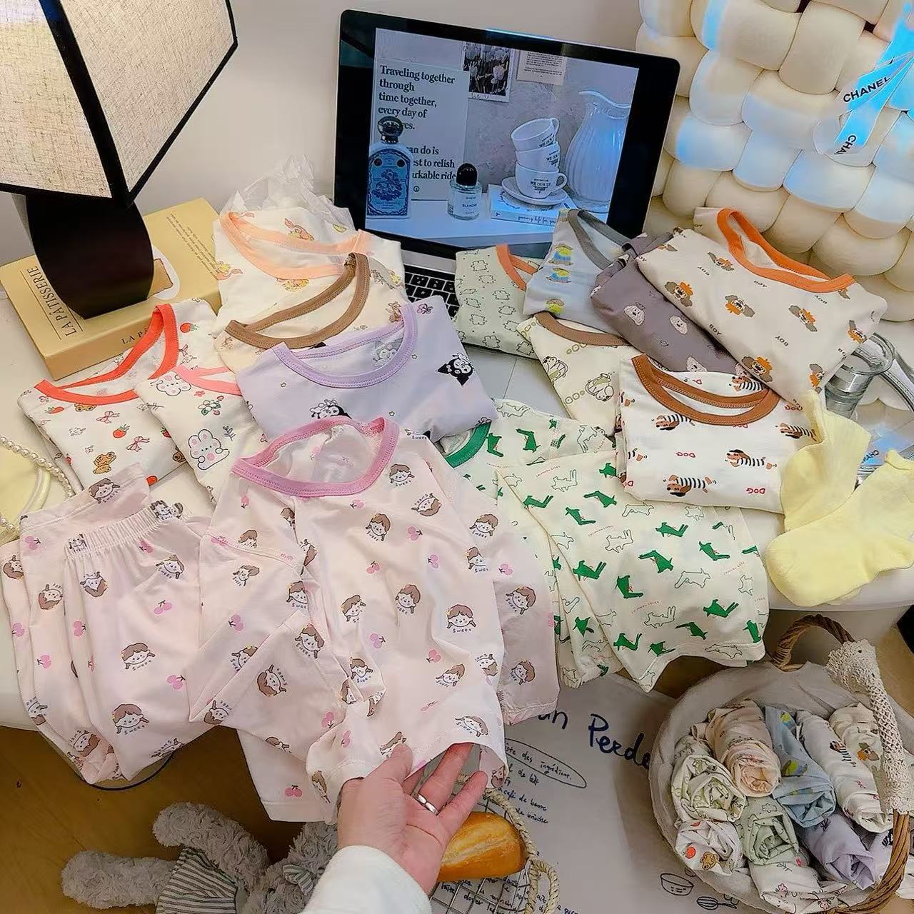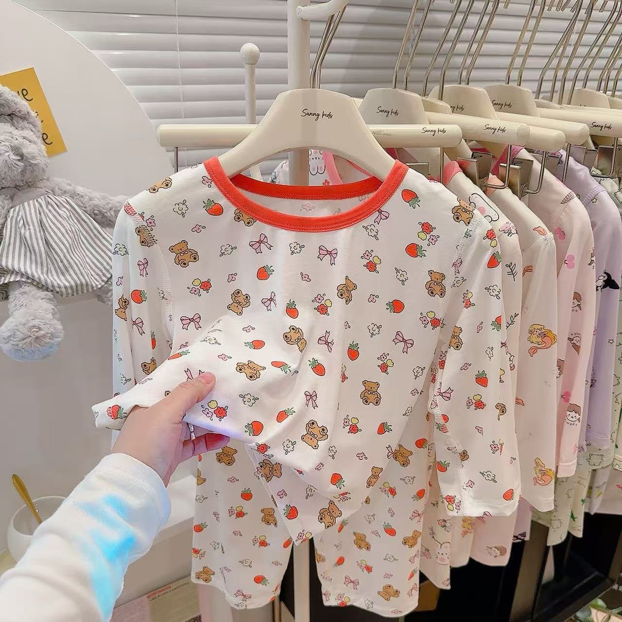 Tencel three-point suit-strawberry bear
