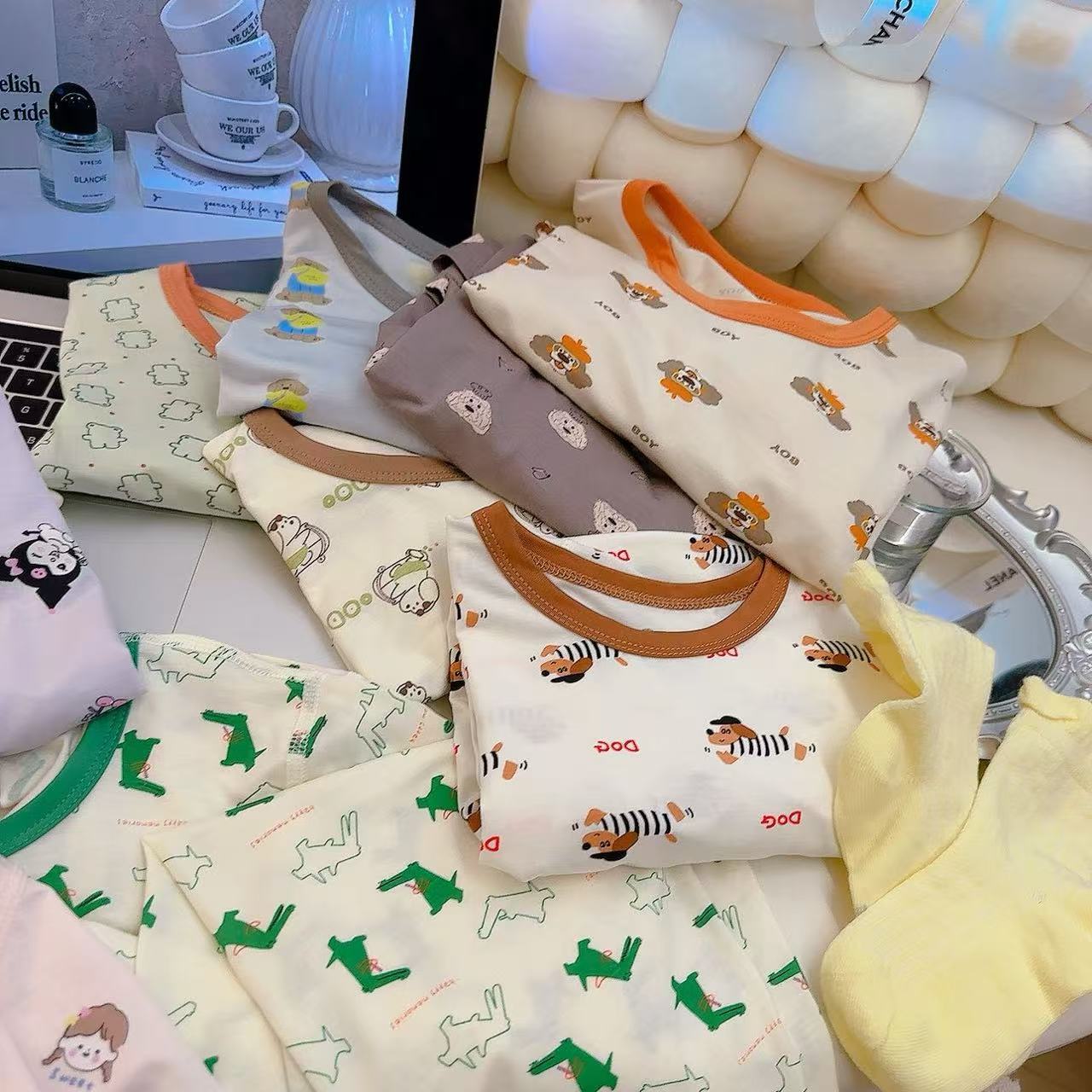 Tencel three-point set-coffee cake dog