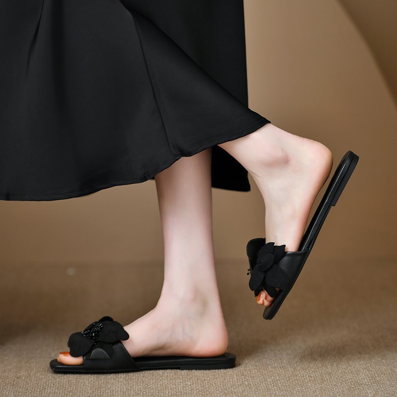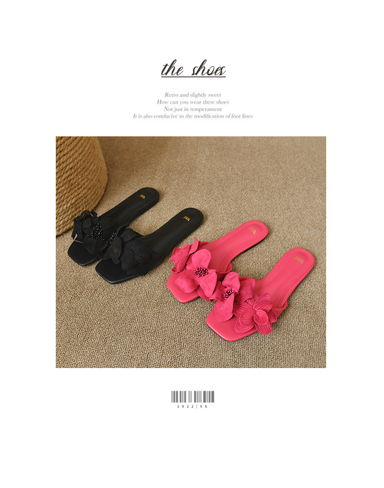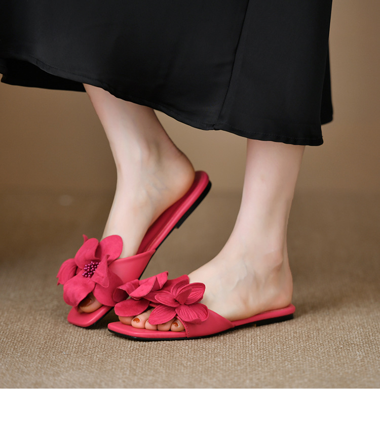 Za Flats Shoes 2024 Spring and Summer Slippers Red Flower Strap Beach Shoes Casual Shoes Non-Slip Rubber Sole