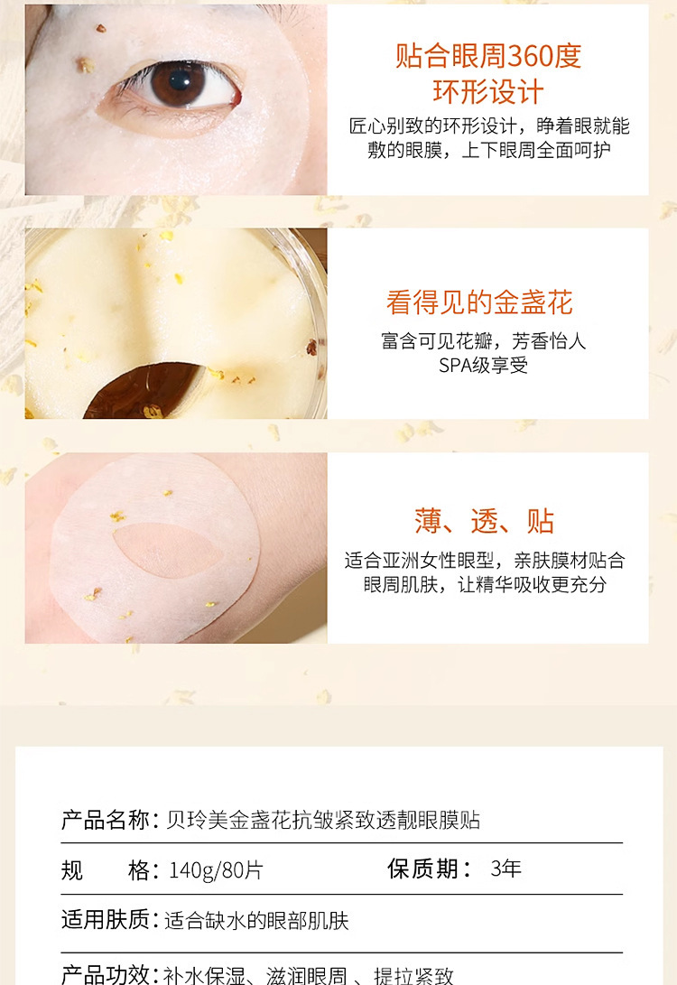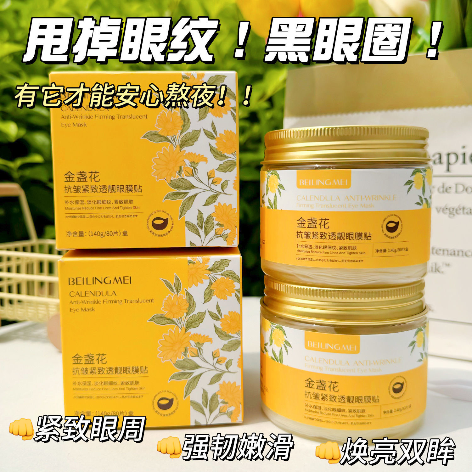 Bei lingmei calendula anti-wrinkle firming and translucent eye mask (140g/80 pieces)