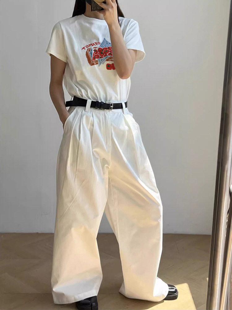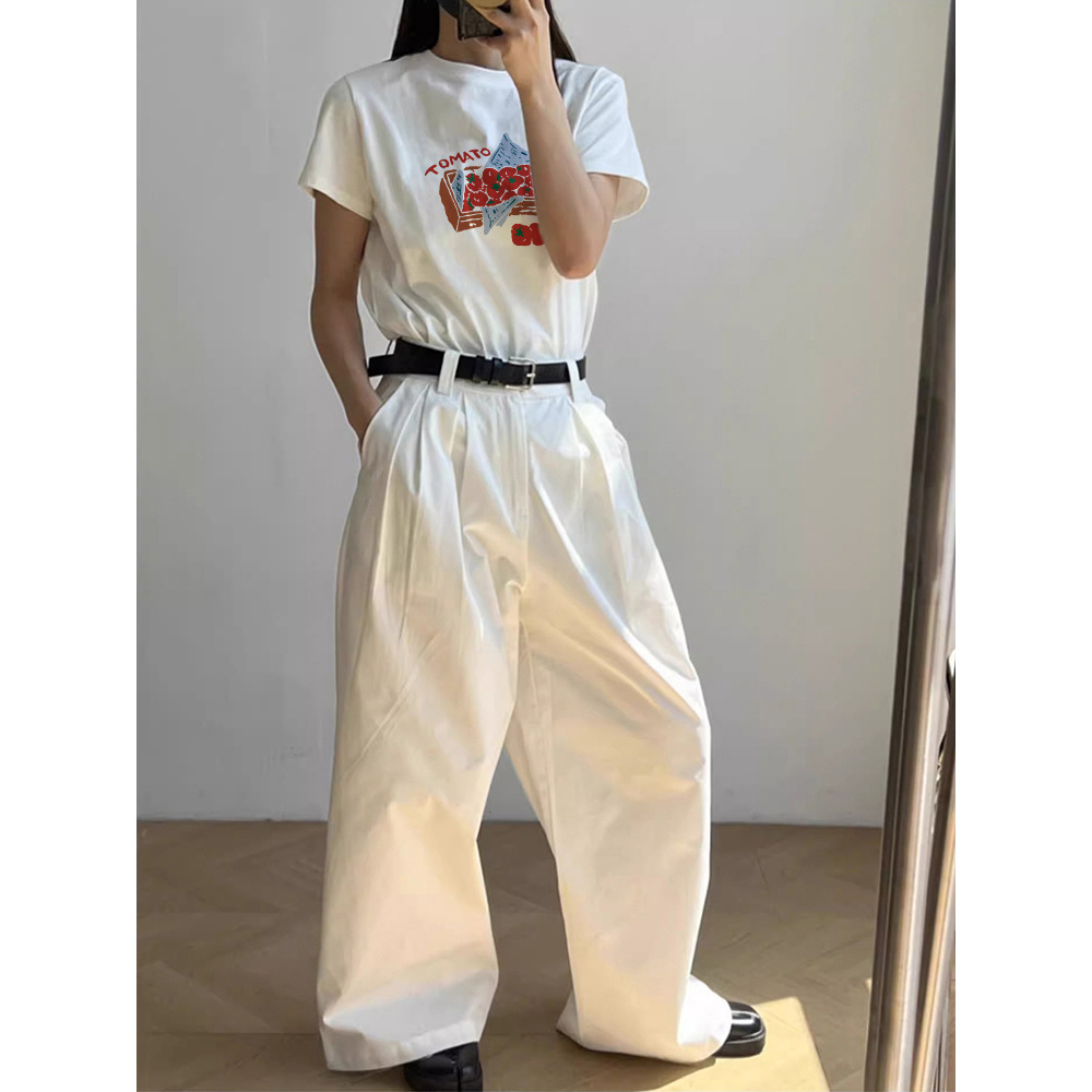 Heavy Weight Cotton Large Size Short-Sleeved Women's Summer Loose Slim T-Shirt Korean Style Regular Shoulder Round Neck Casual Bottoming Top