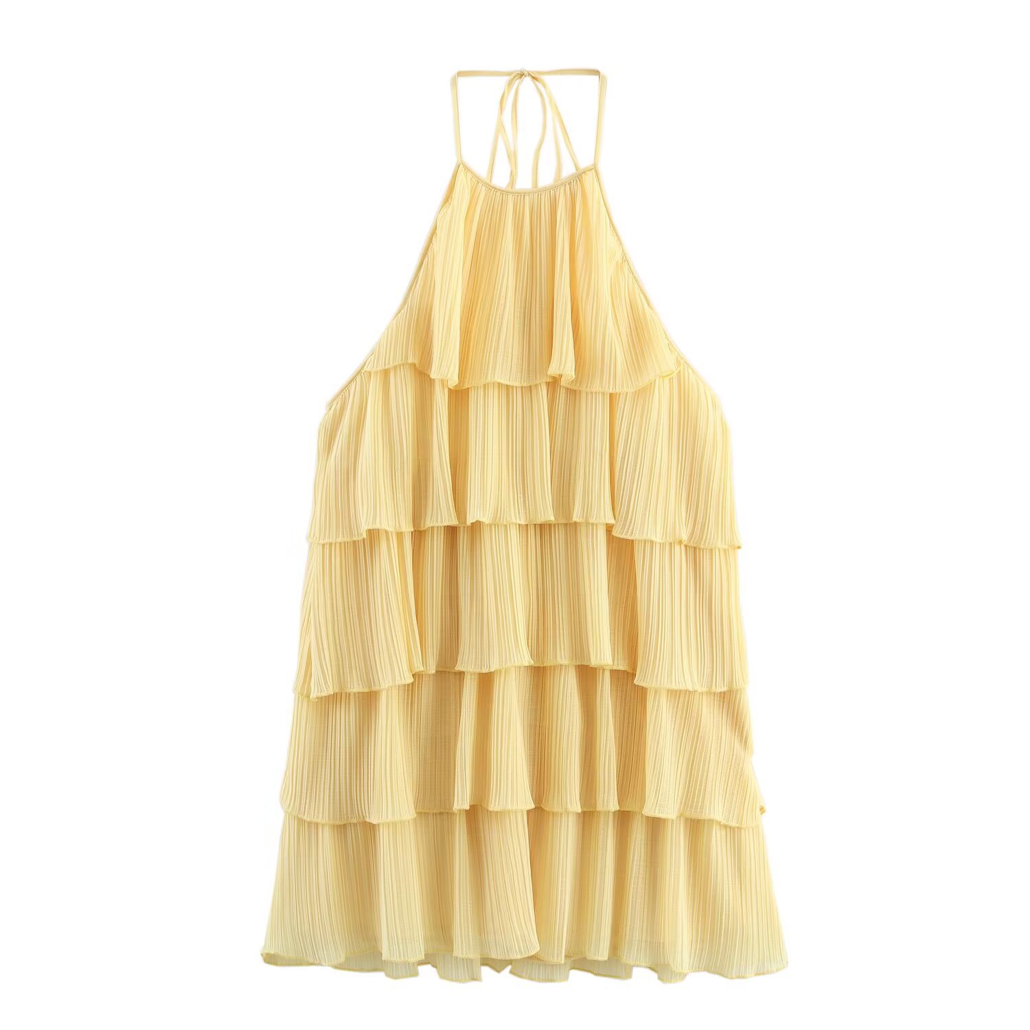 Pb&Za Women's 2025 Summer New Resort Style Fashion Layered Decorative Halter Neck Dress 1165301