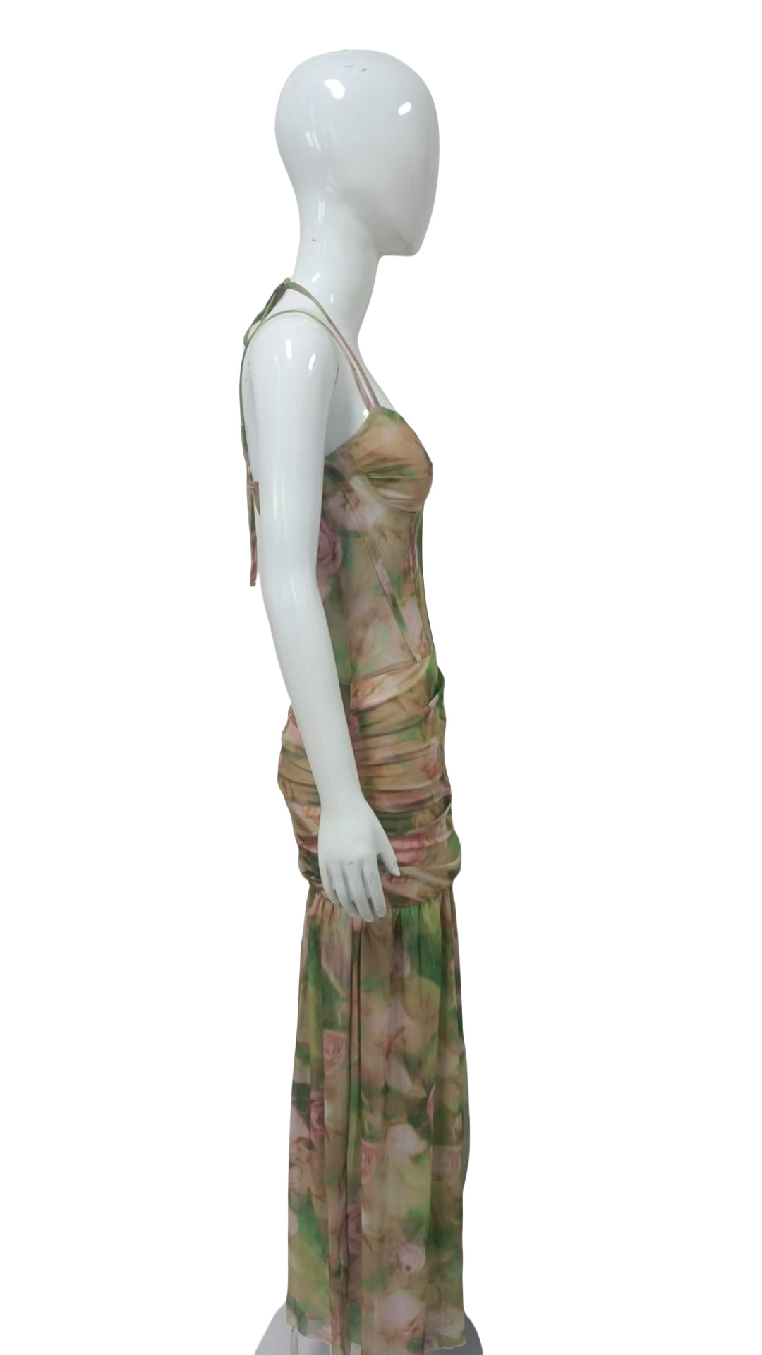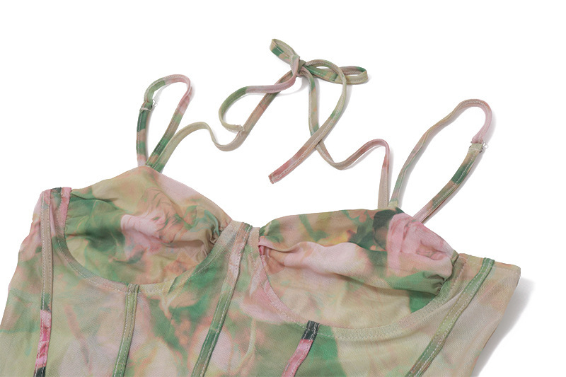 European and American Women's 2025 Summer New Sexy Sling Printed Holiday Beach High Waist Slimming Split dress Women
