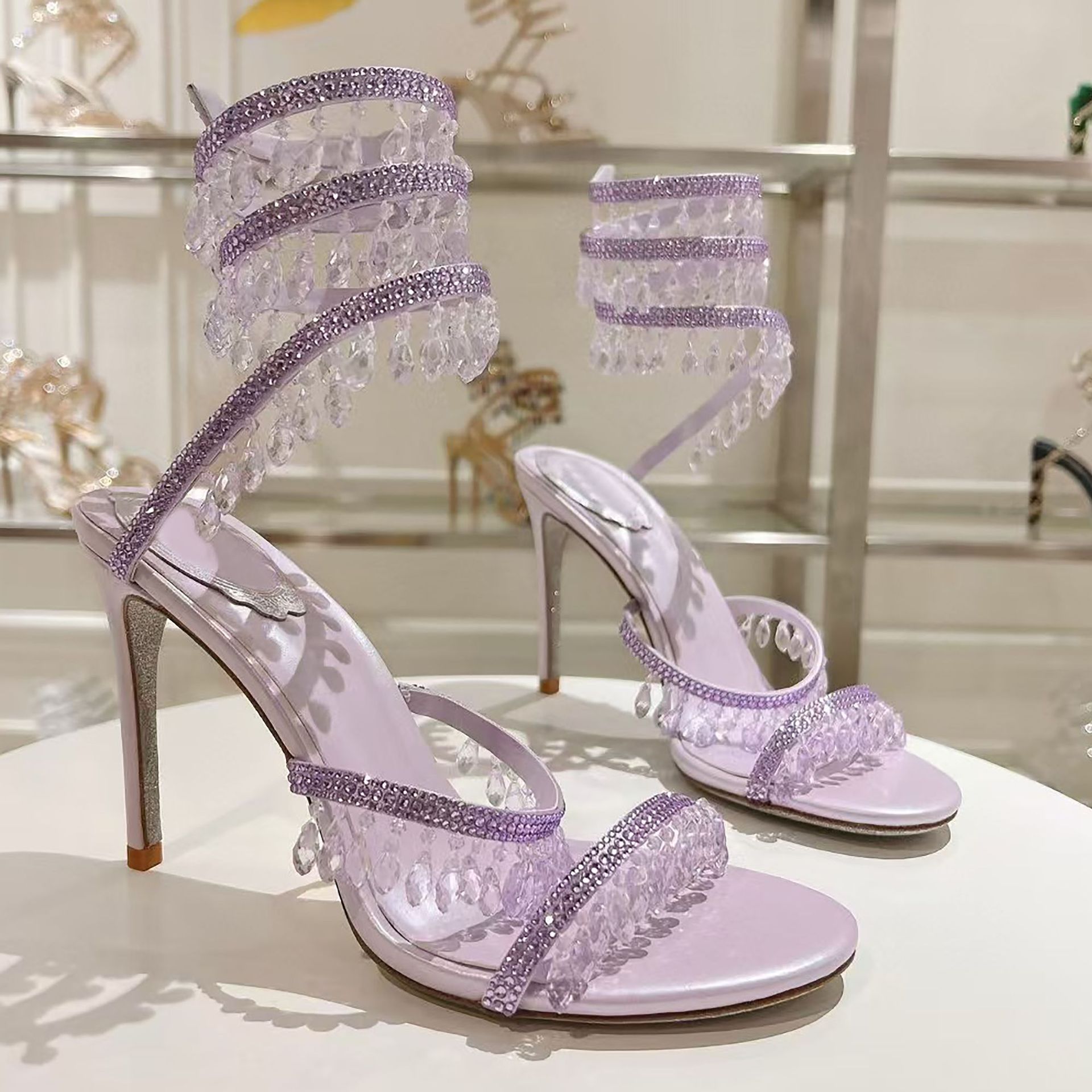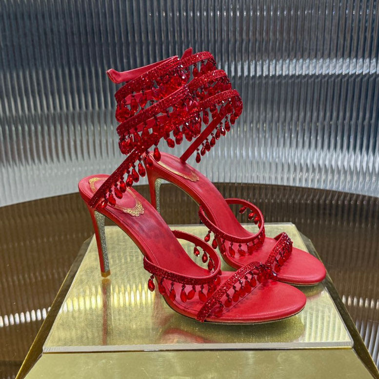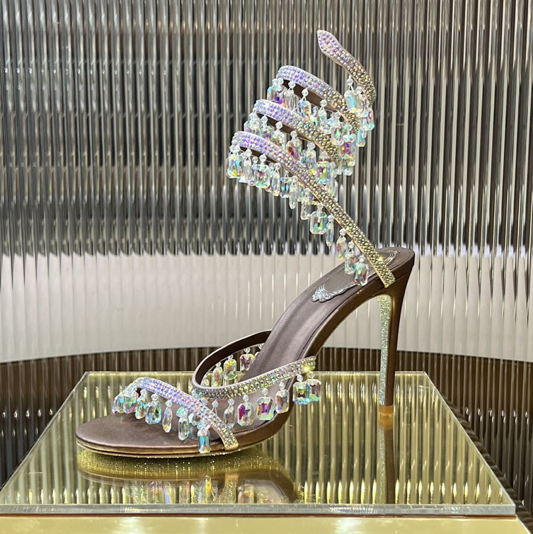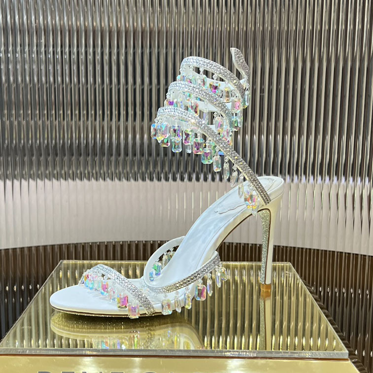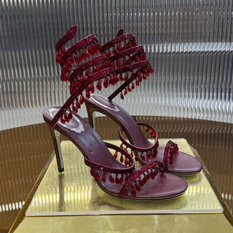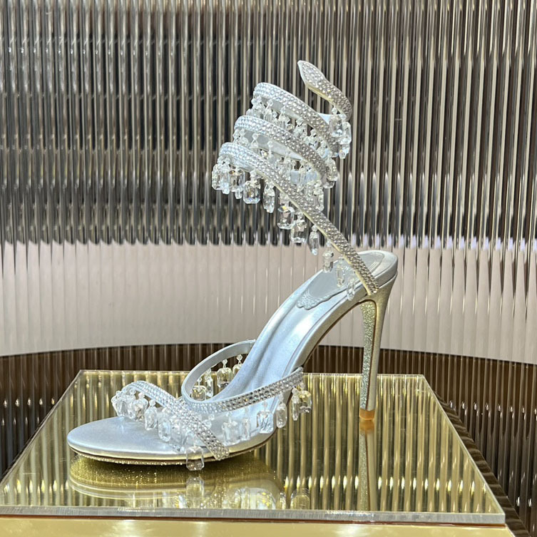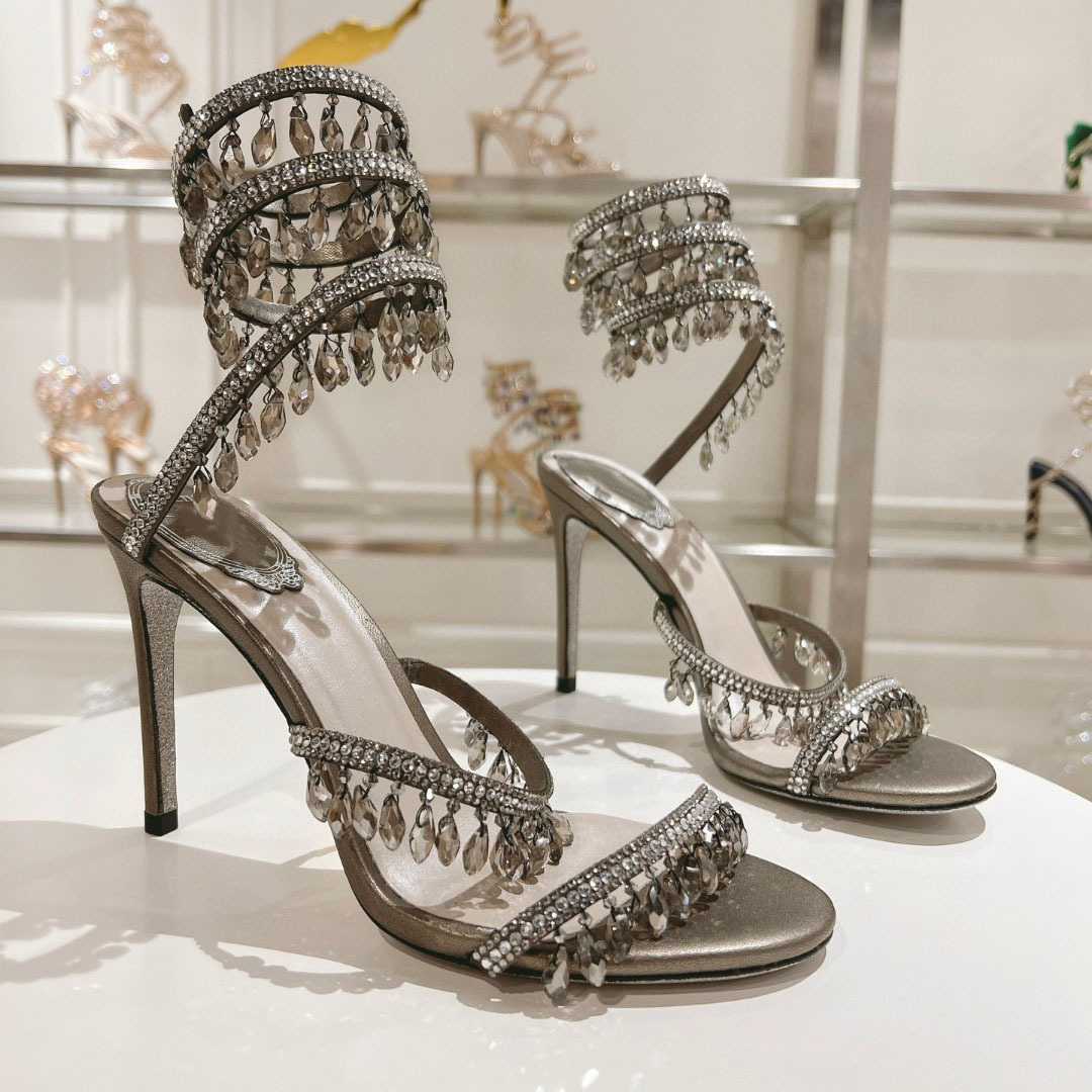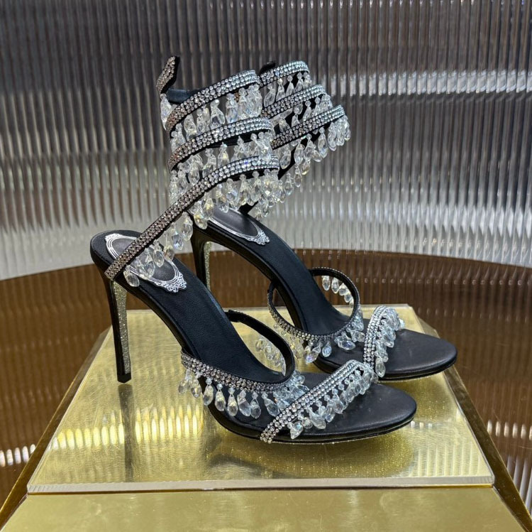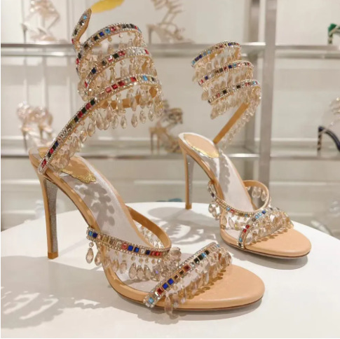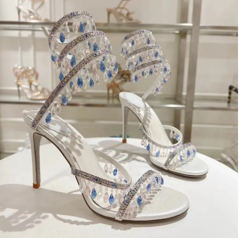 Rc Crystal Chandelier High-Heeled Sandals Fly-Shaped Winding Sexy Fashion Stiletto Dress Shoes Party Wedding 9.5cm