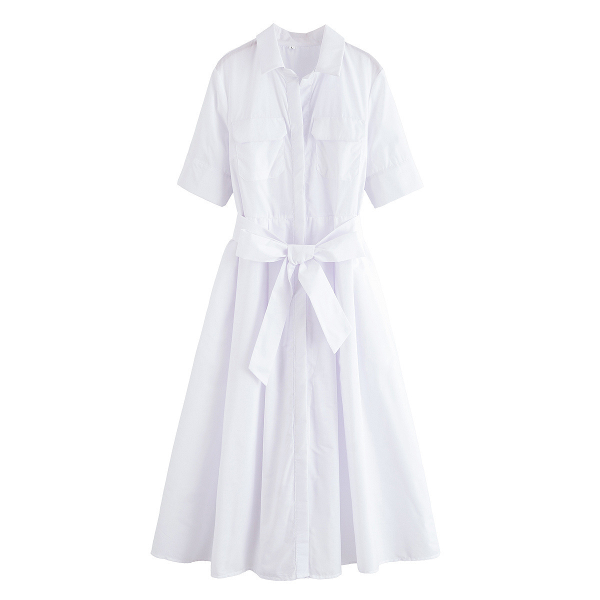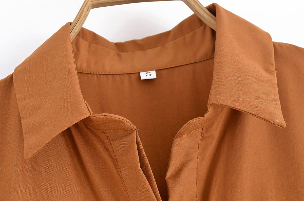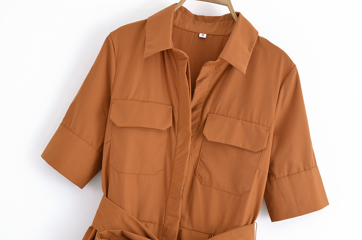 Za Cross-Border Women's Clothing Wholesale European and American Style 2025 New Style Belted Lapel Pure Color Short-Sleeved Dress 2640360