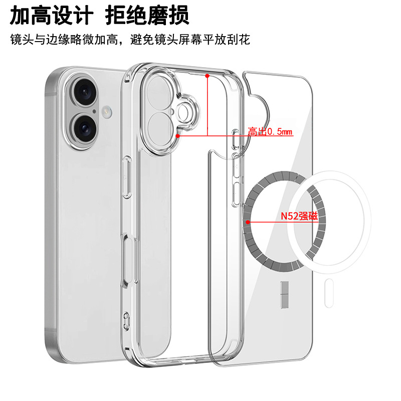 Magnetic transparent precision hole iphone case