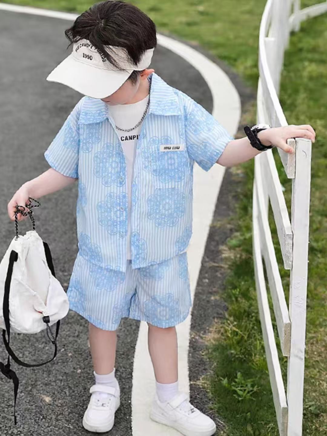Children's New Korean Style Cool and Handsome Street Suit Baby Boy Sun Protection Cool Suit Trendy Ready-Made Pants Suit