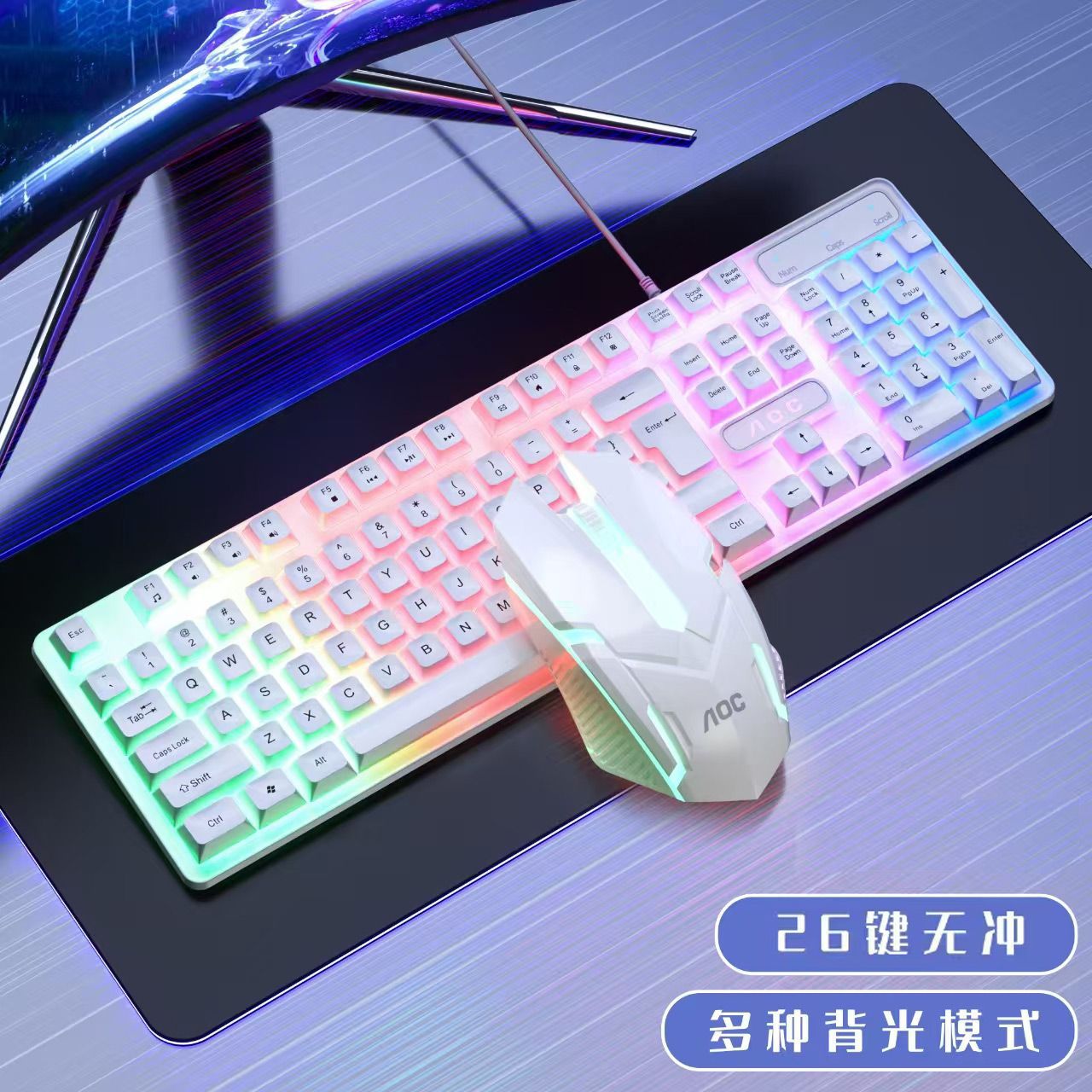 Aoc-white luminous keyboard and mouse set