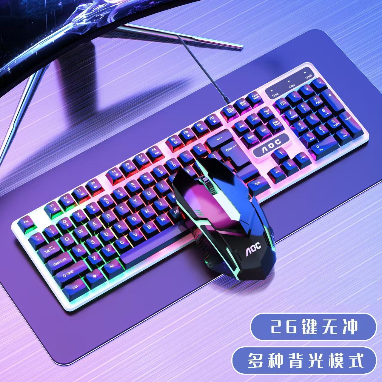 Aoc-black luminous keyboard and mouse set