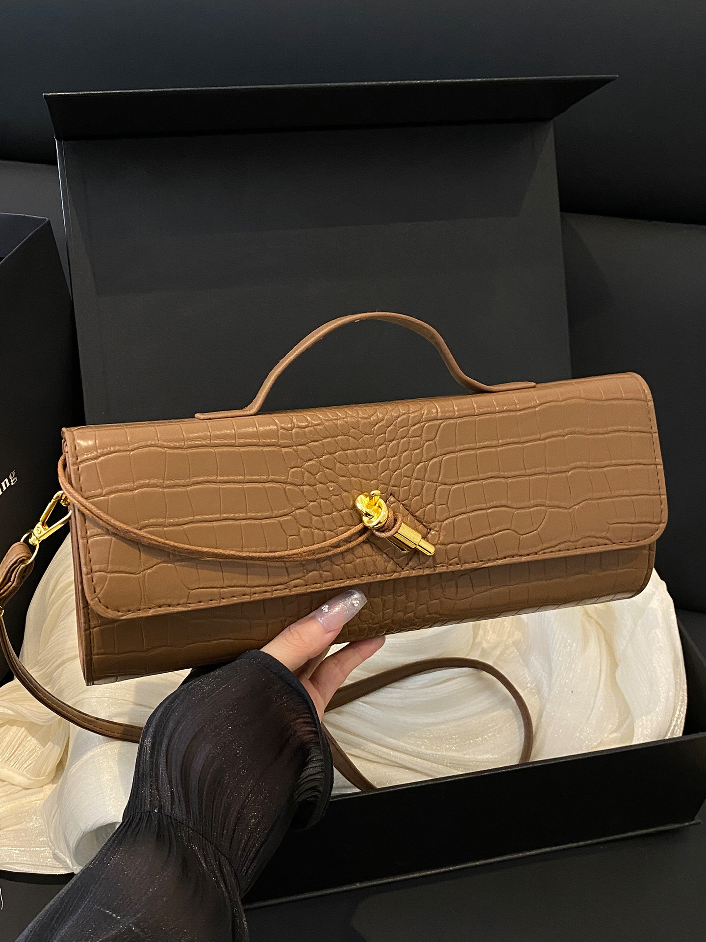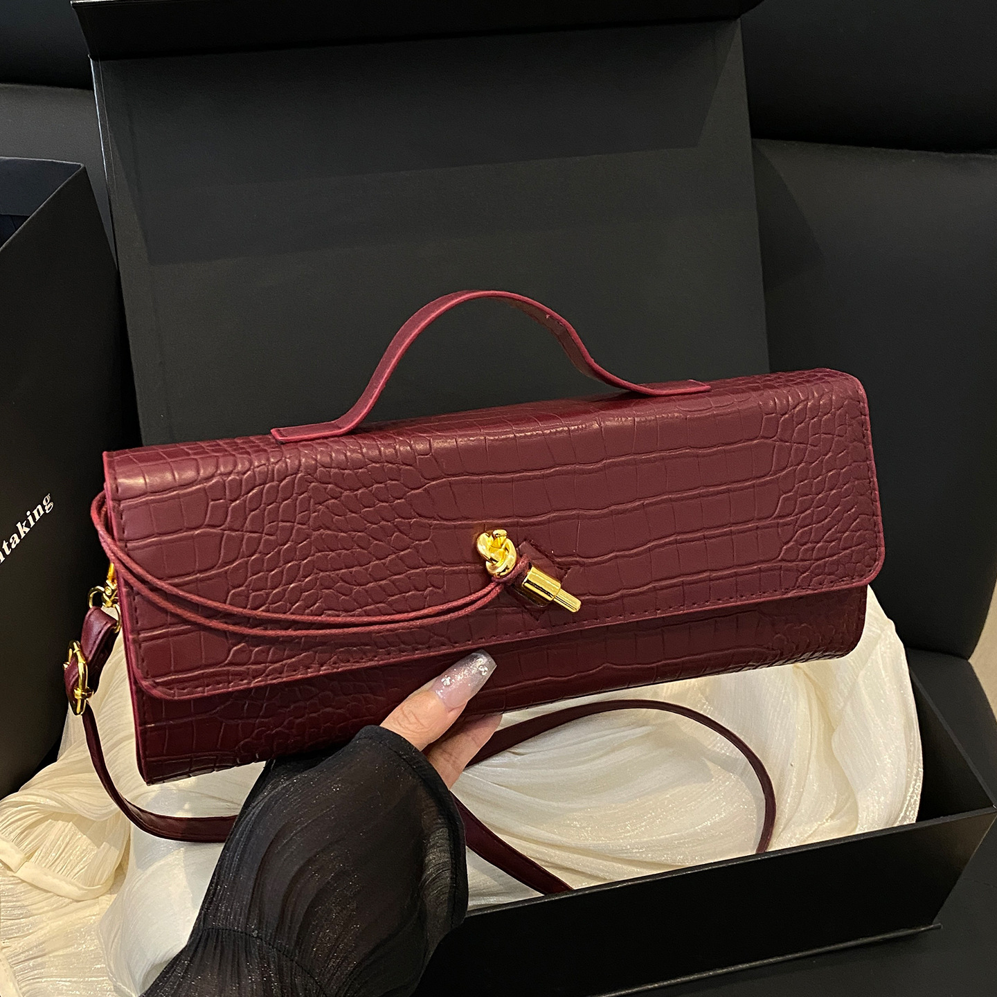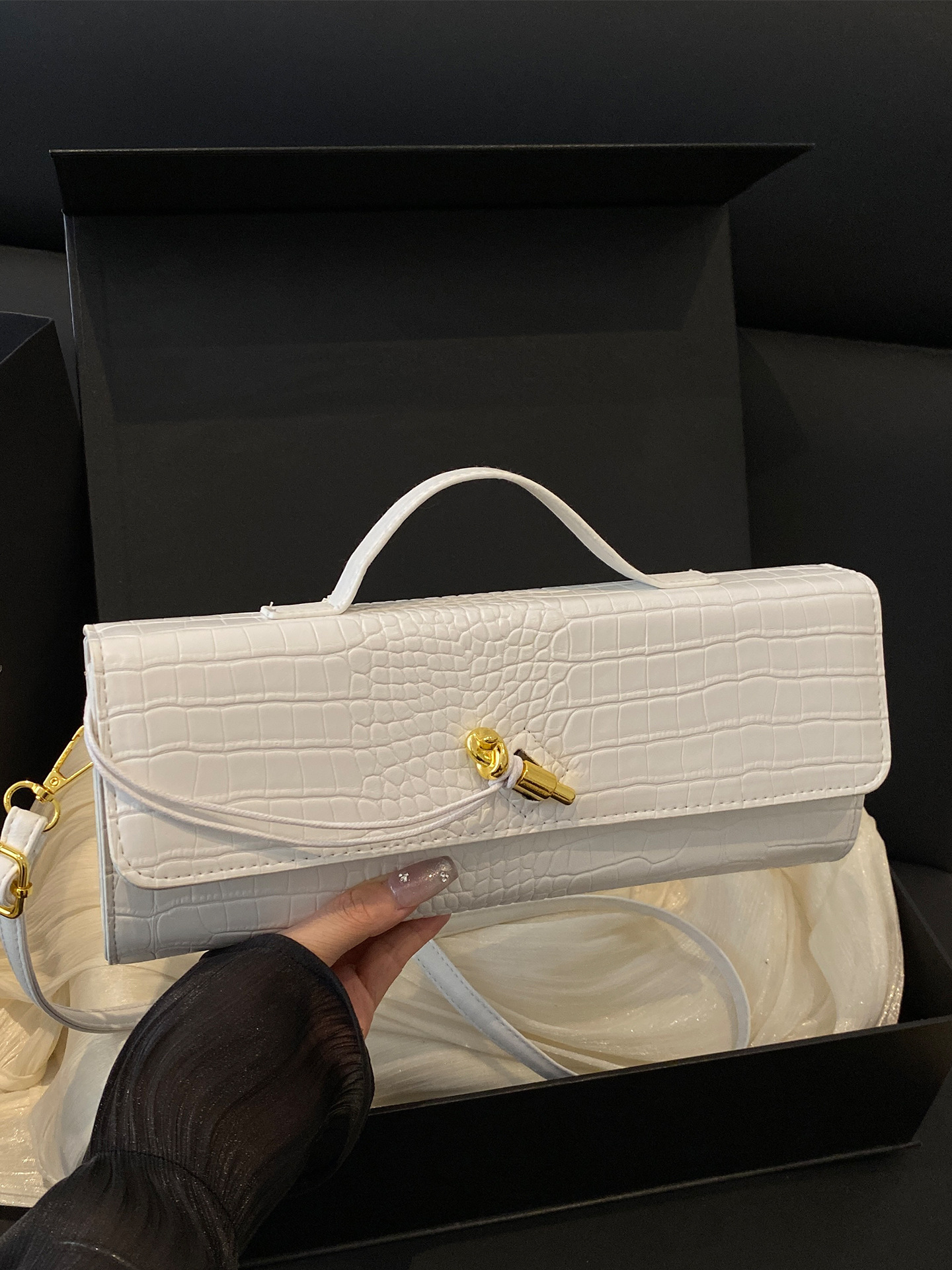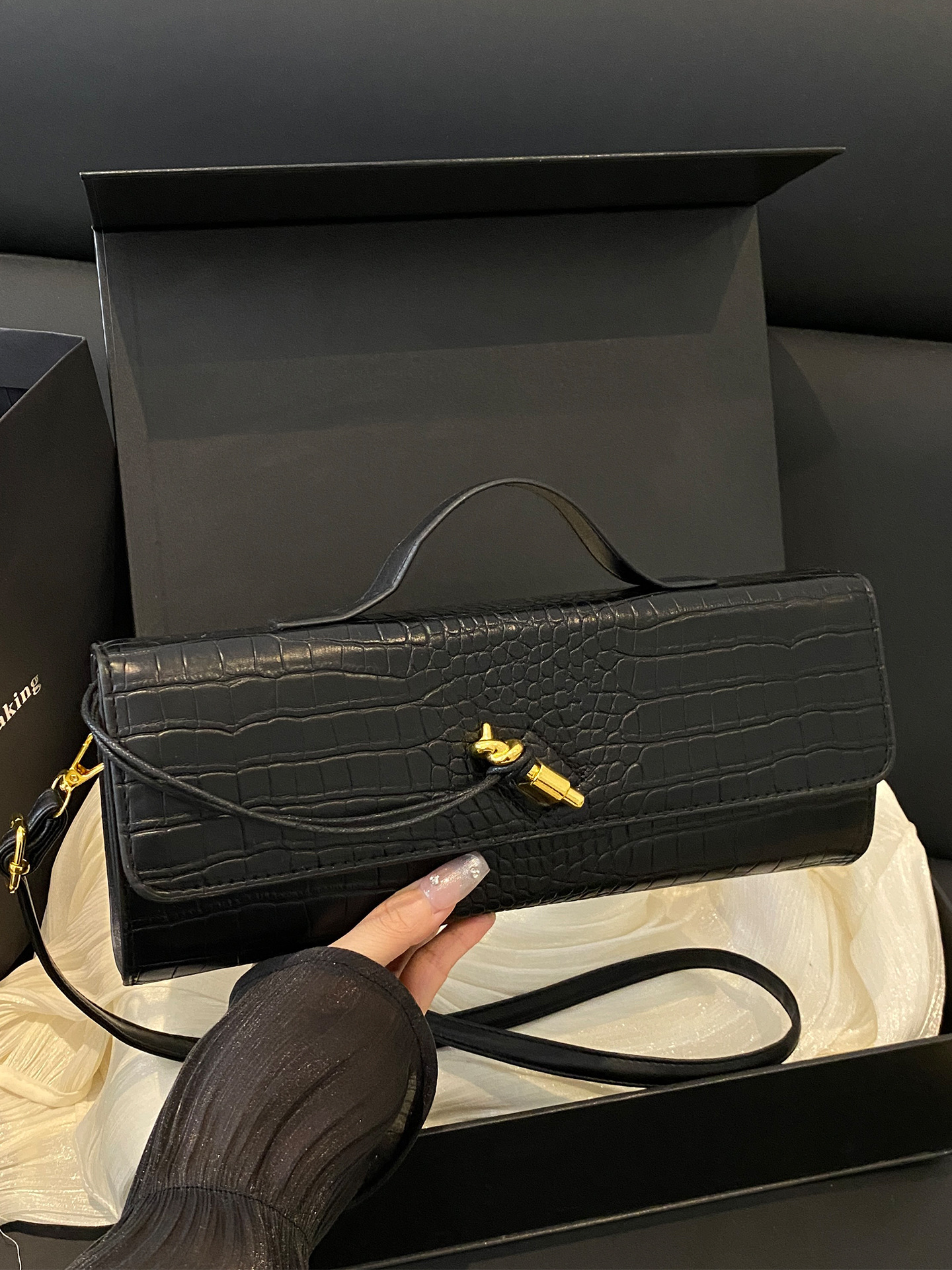Women's Bag Crocodile Pattern Evening Bag Baguette Bag Diagonal Lock Horizontal Handbag 2025 Summer New Single Shoulder Crossbody Bag