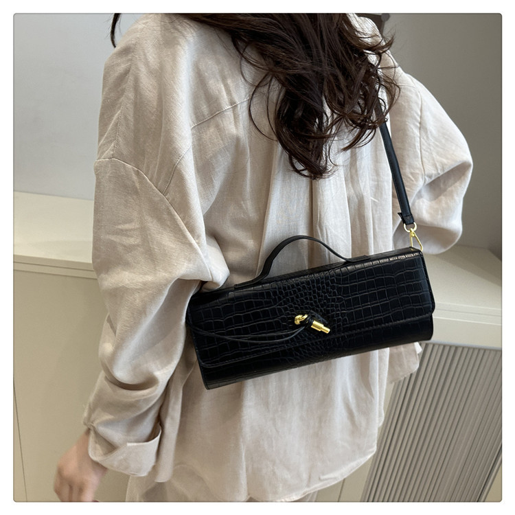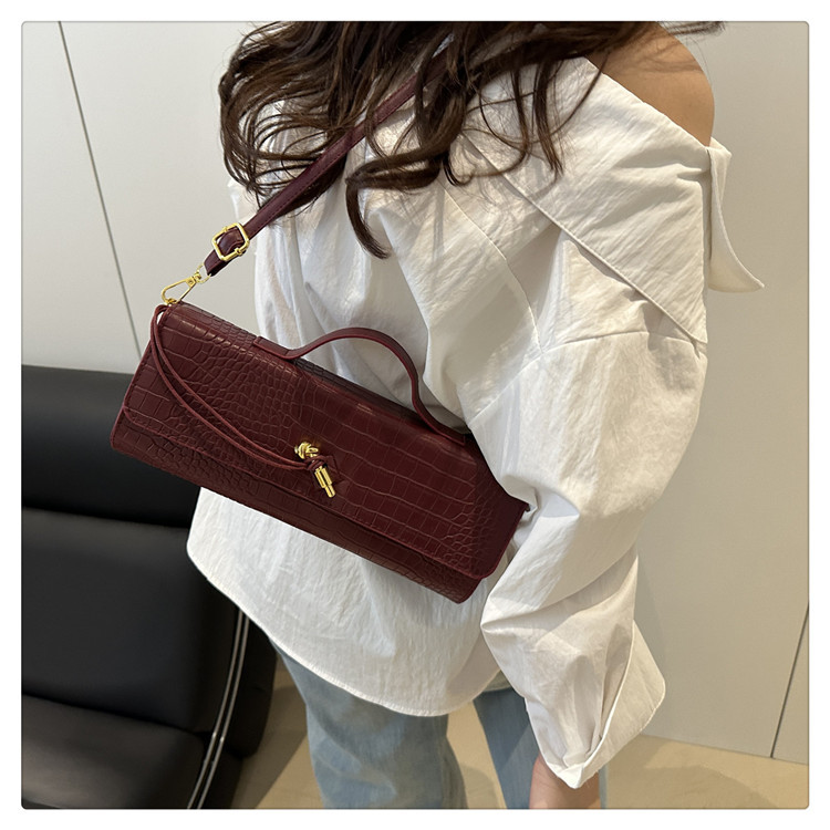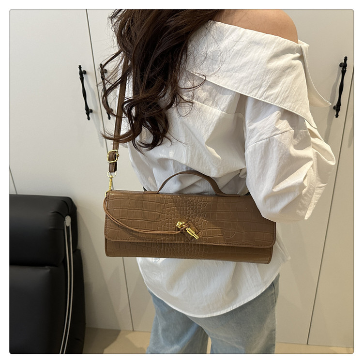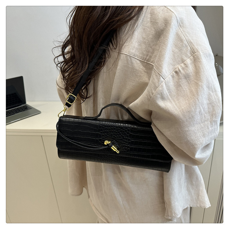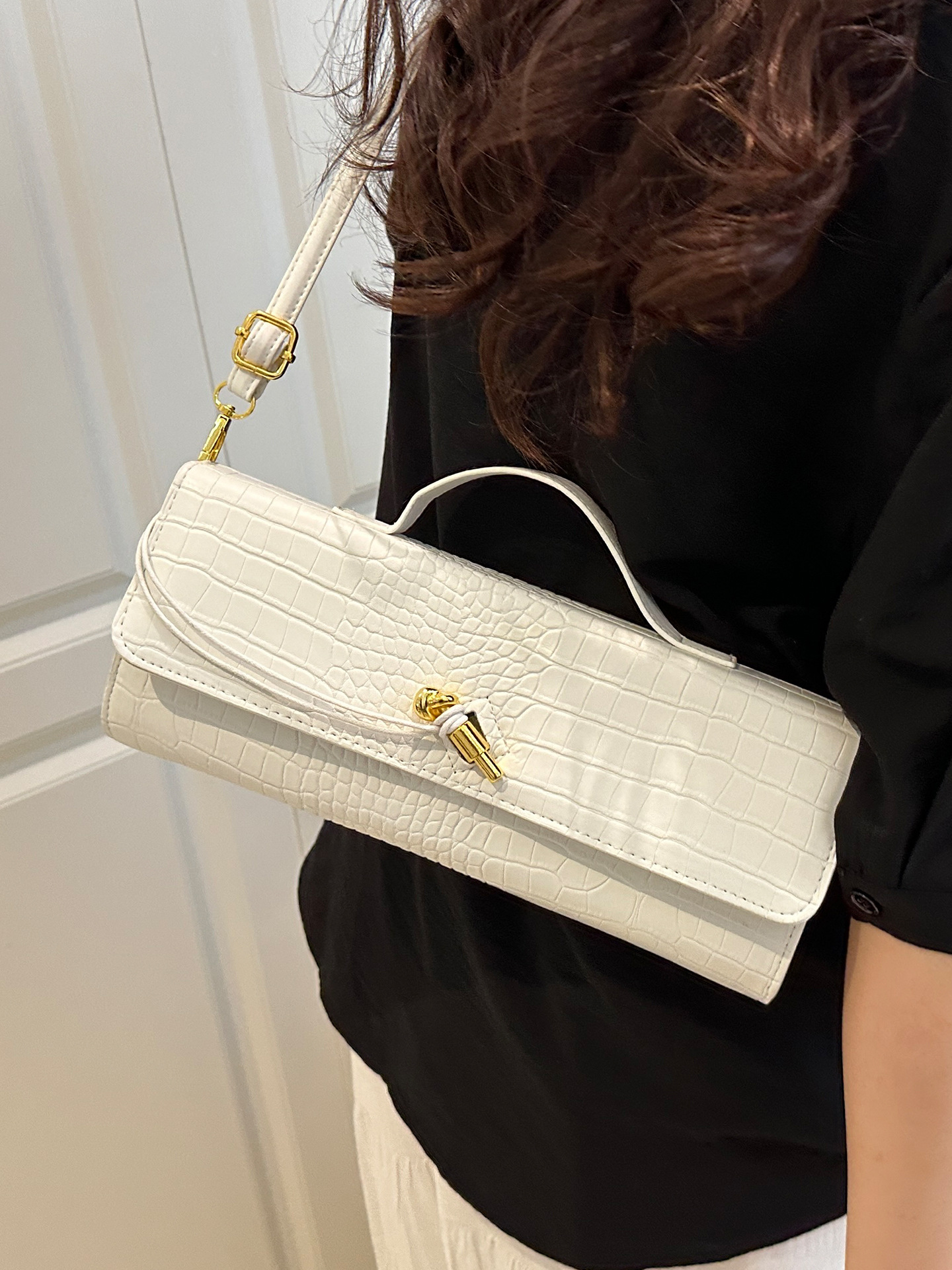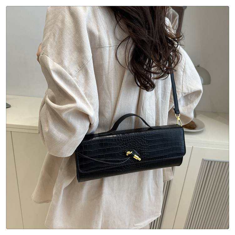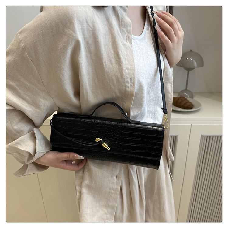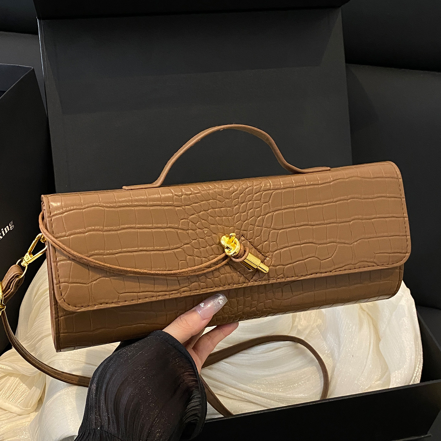 Women's Bag Crocodile Pattern Evening Bag Baguette Bag Diagonal Lock Horizontal Handbag 2025 Summer New Single Shoulder Crossbody Bag