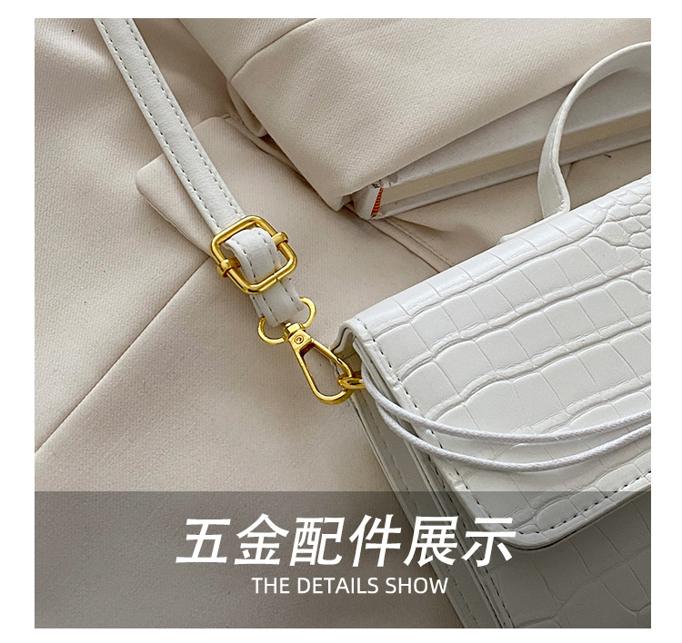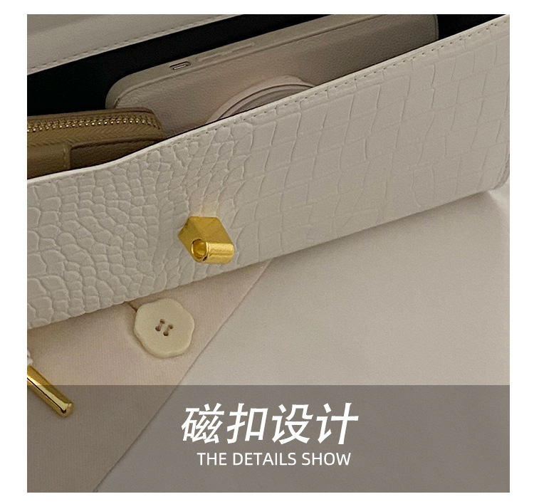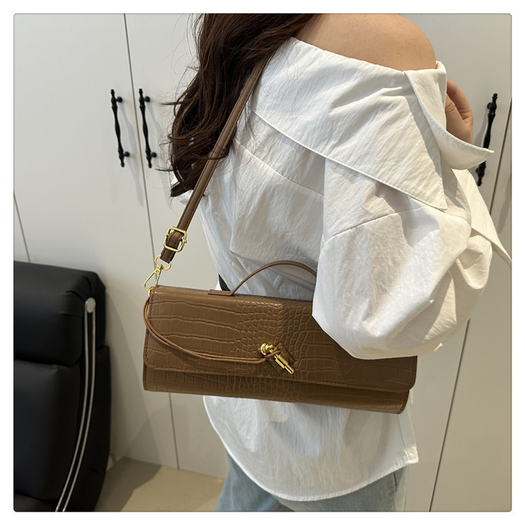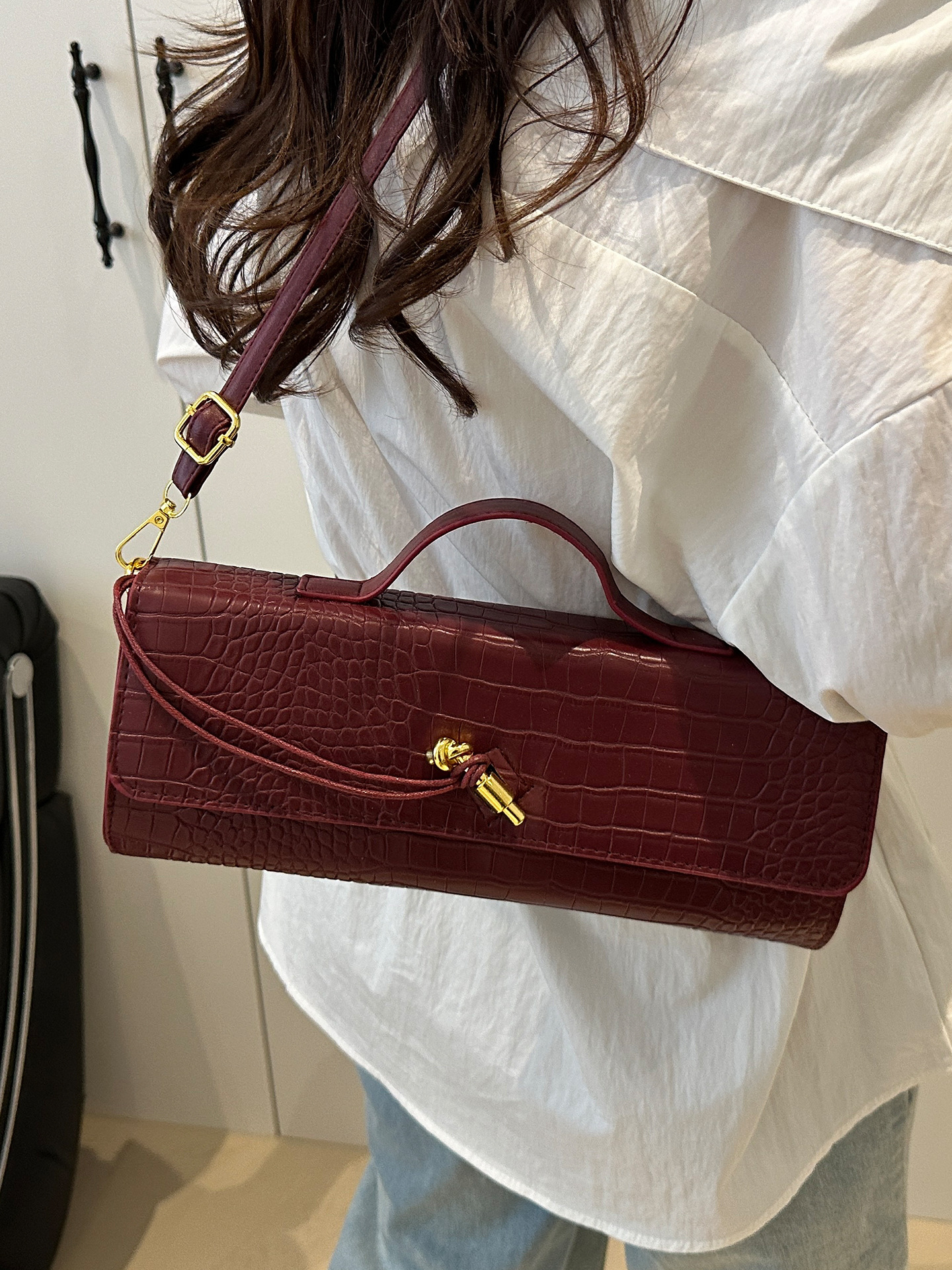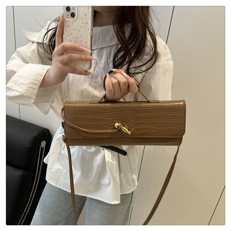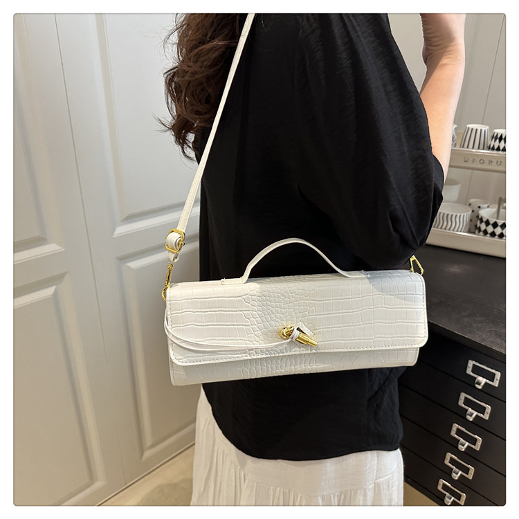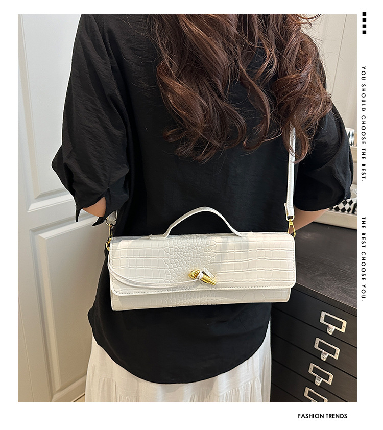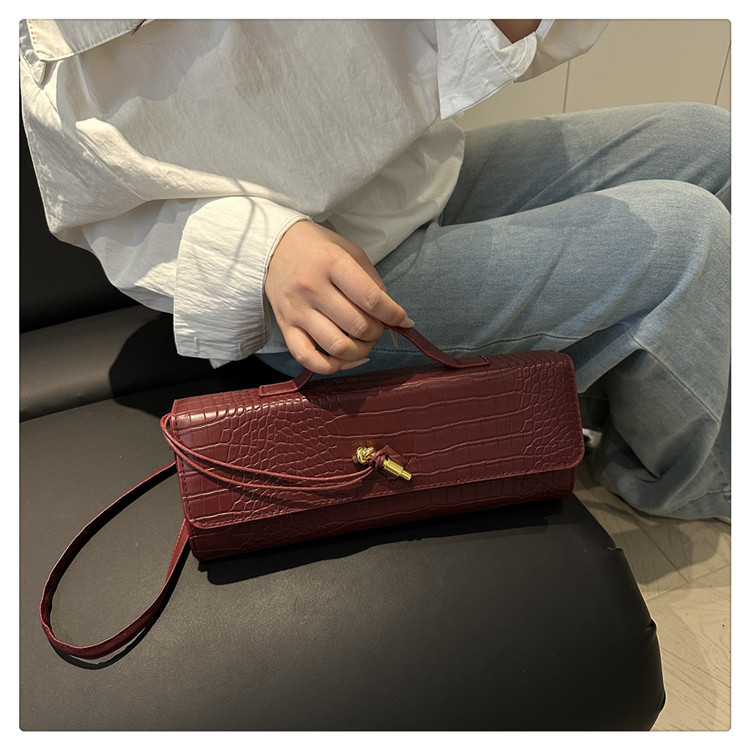 Women's Bag Crocodile Pattern Evening Bag Baguette Bag Diagonal Lock Horizontal Handbag 2025 Summer New Single Shoulder Crossbody Bag