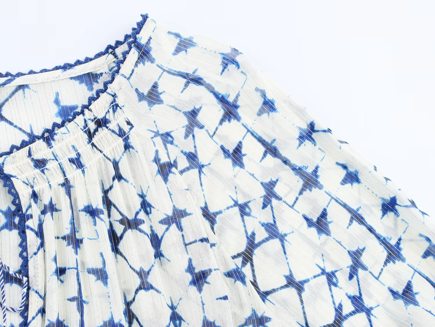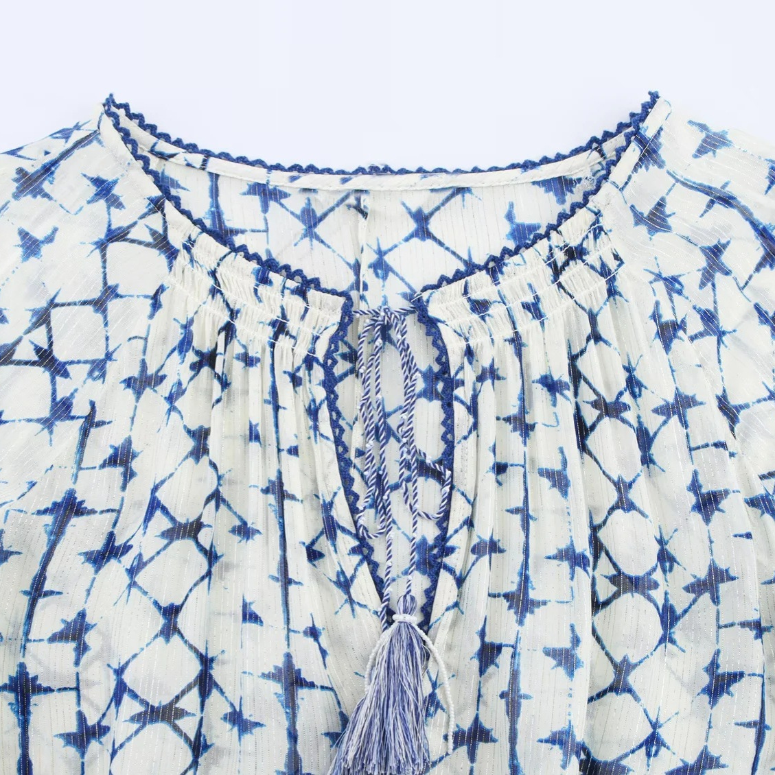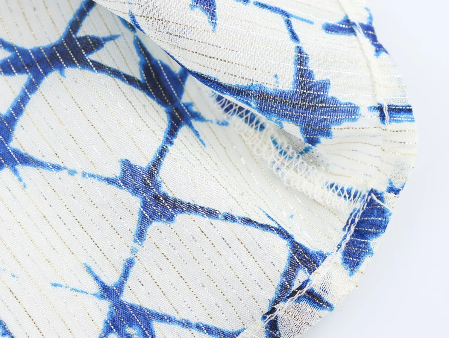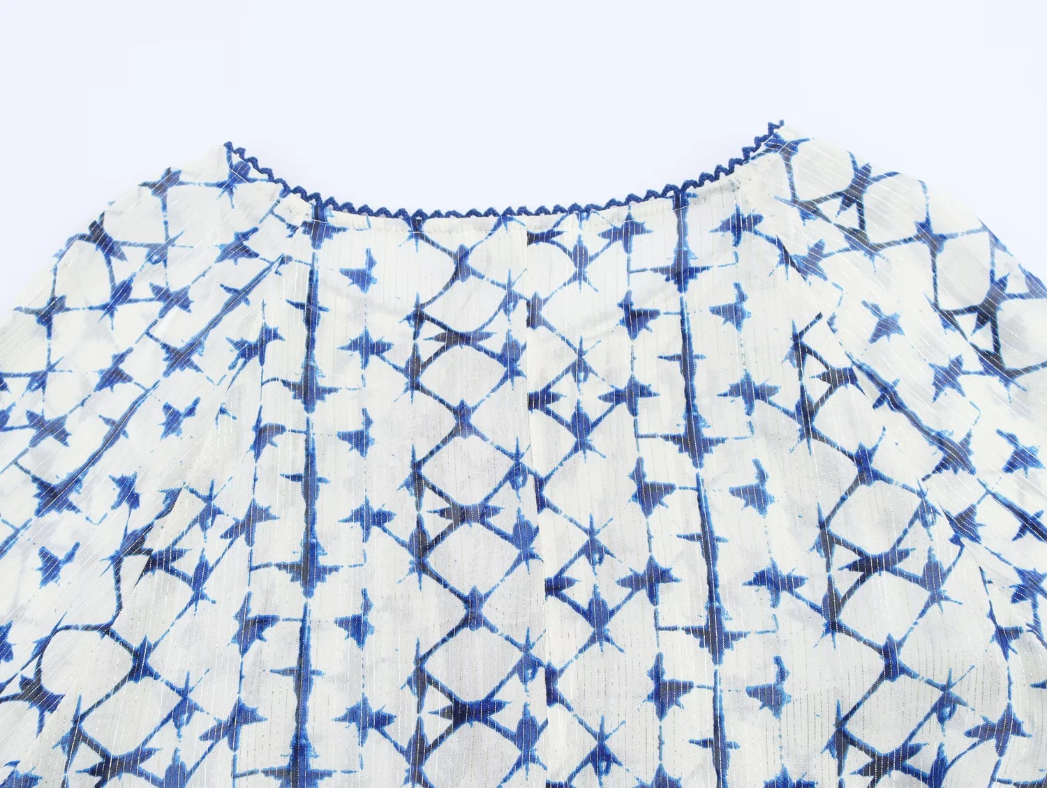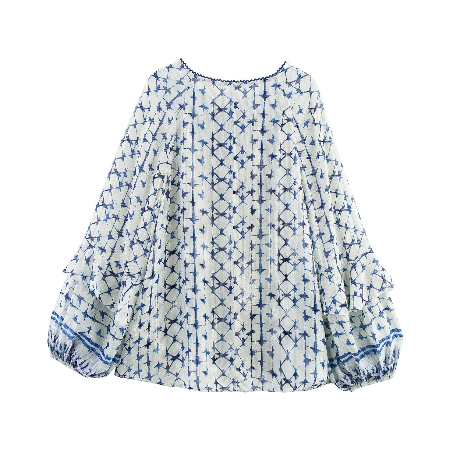 Za Export Women's European and American Style Summer New Fashion Metallic Color Line Printed Blouse Loose and Versatile Long-Sleeved Shirt