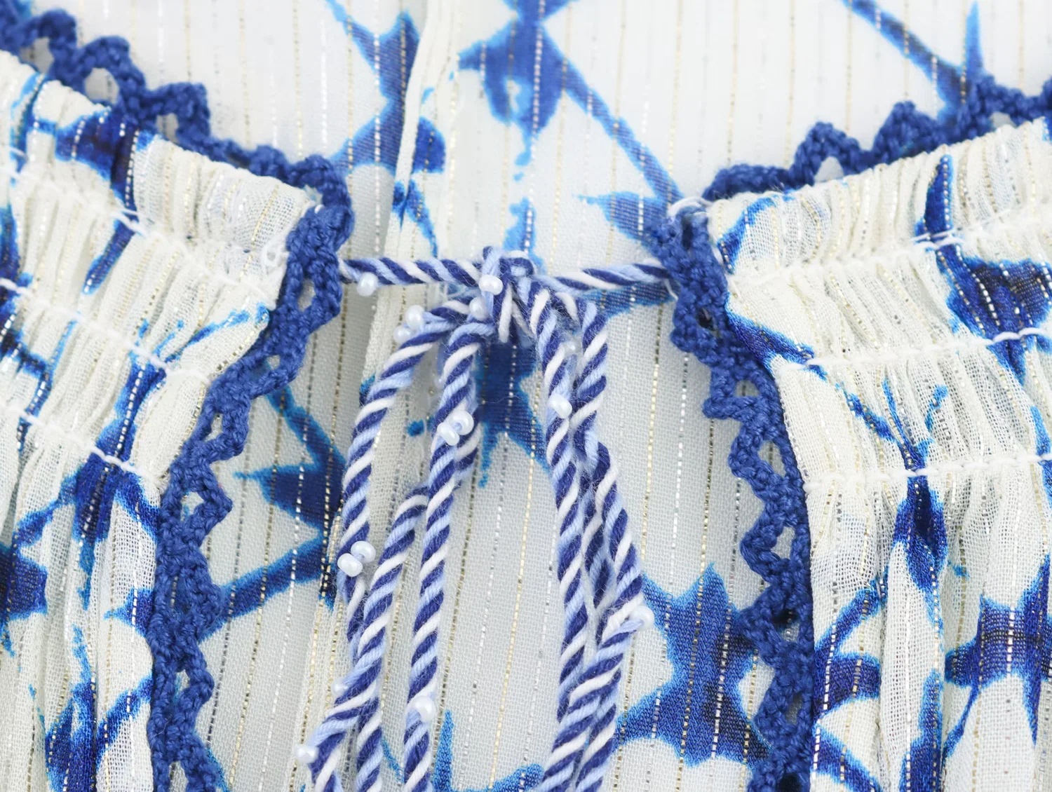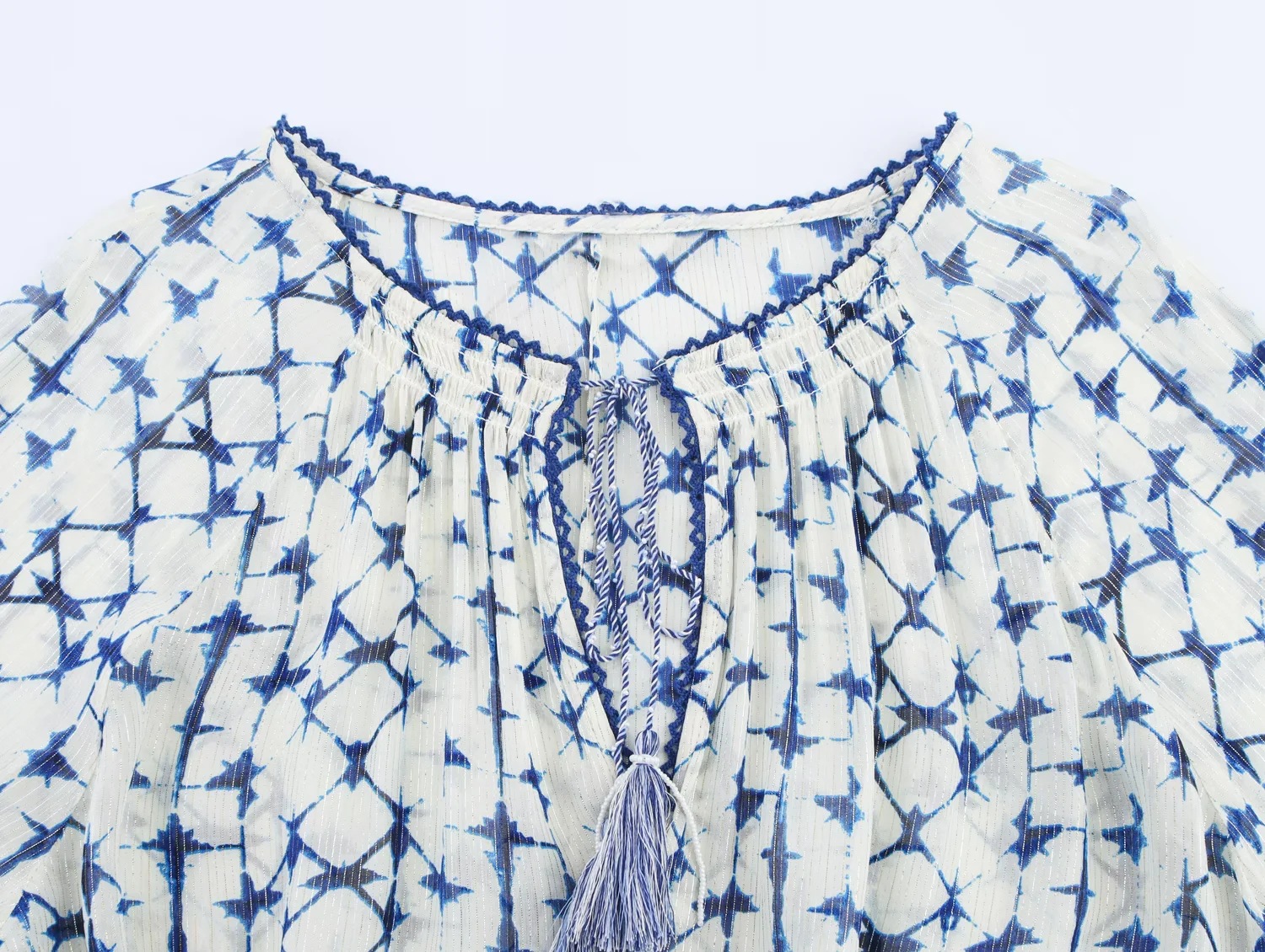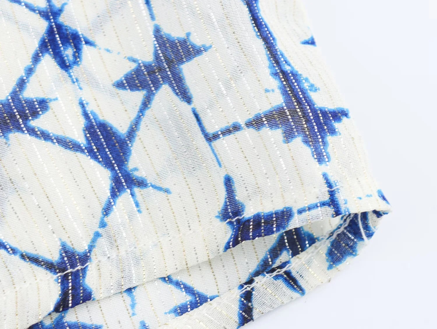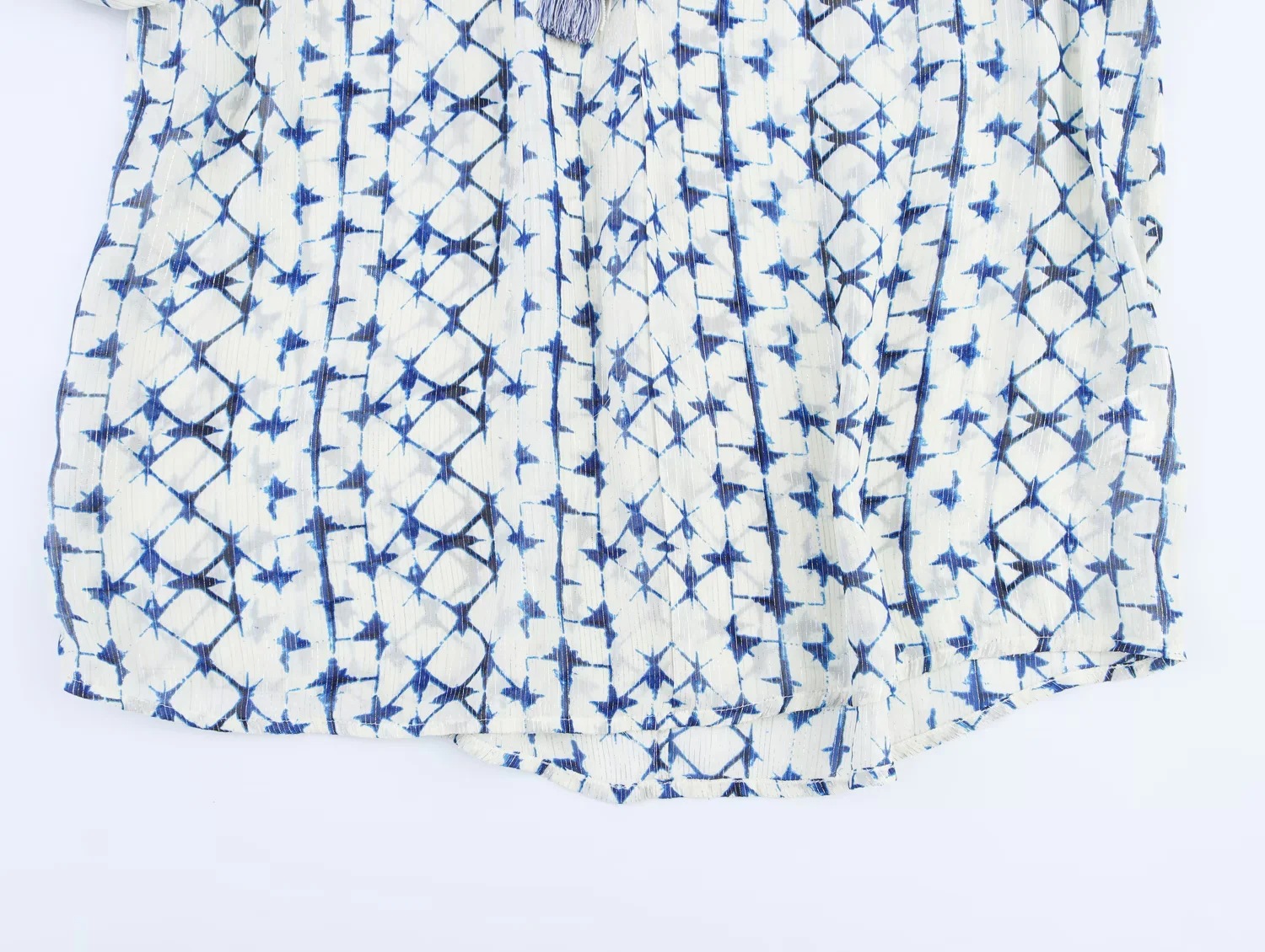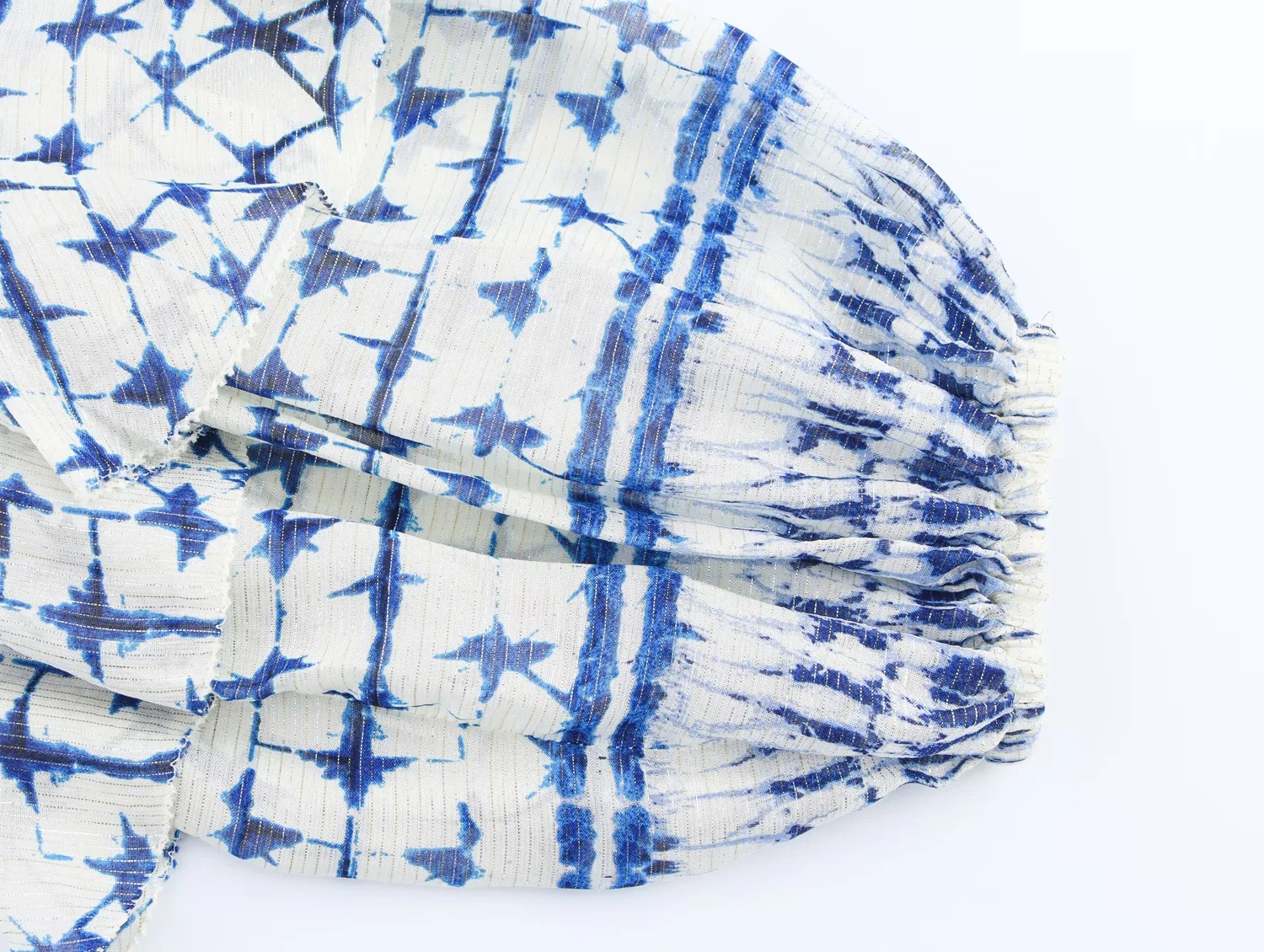 Za Export Women's European and American Style Summer New Fashion Metallic Color Line Printed Blouse Loose and Versatile Long-Sleeved Shirt