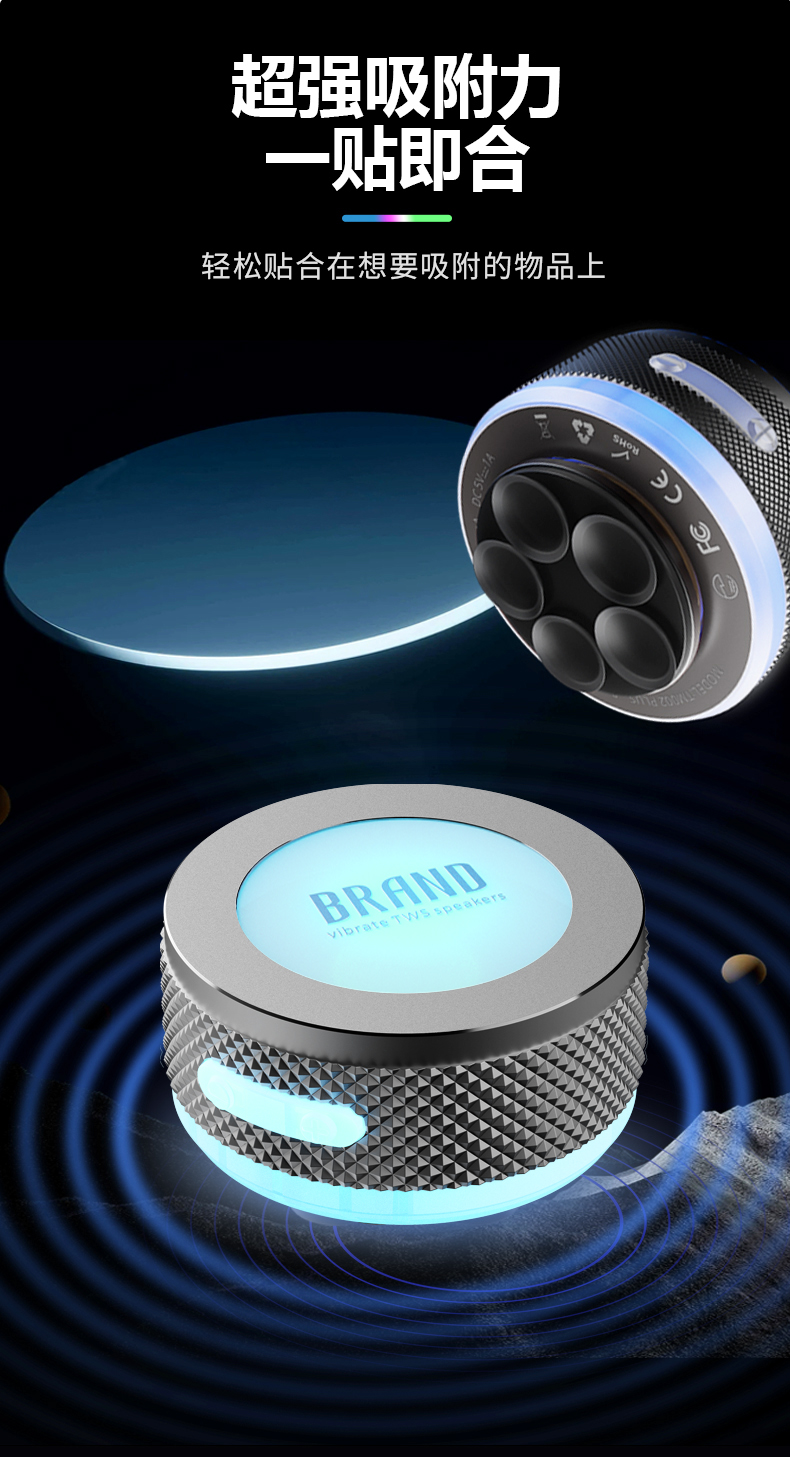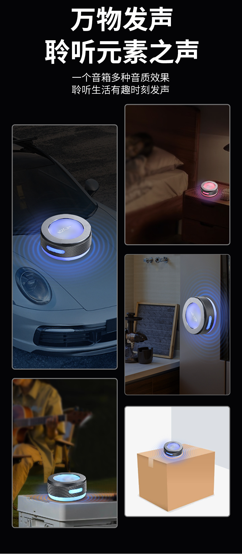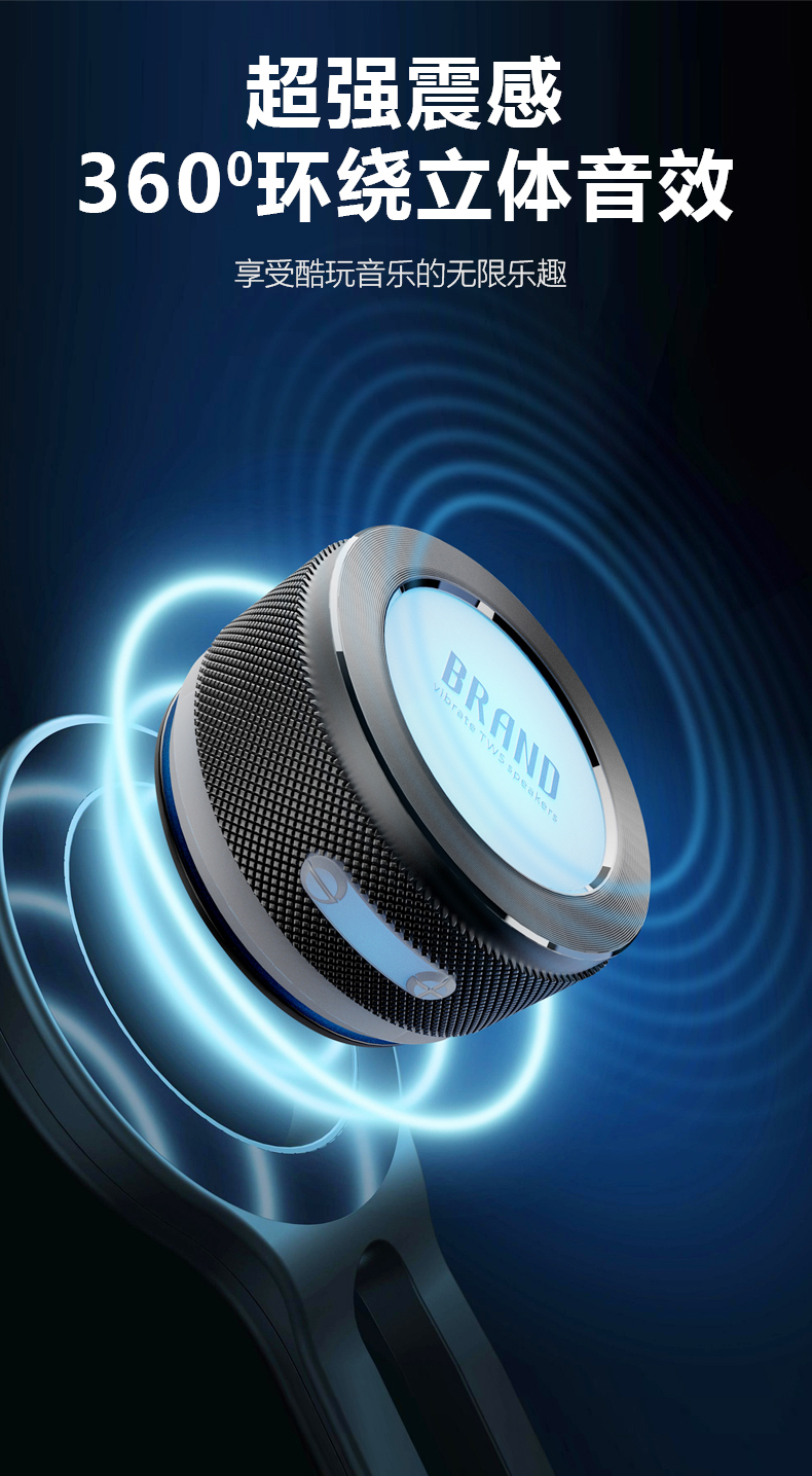 产品卖点:紧贴不同物体感受不同的音效体验,时尚纯铝外壳,创意360度立体声环绕设计,居家、旅途带给你无穷乐趣