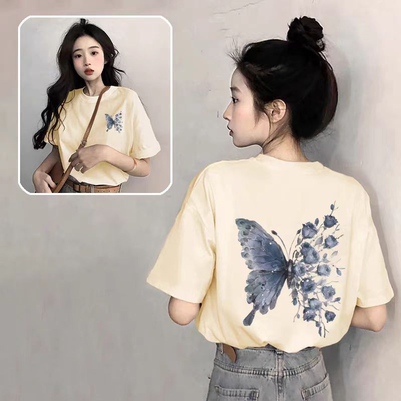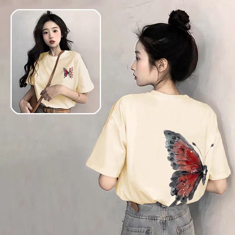 Apricot color-a61 before and after picture half red butterfly [pure cotton fabric]