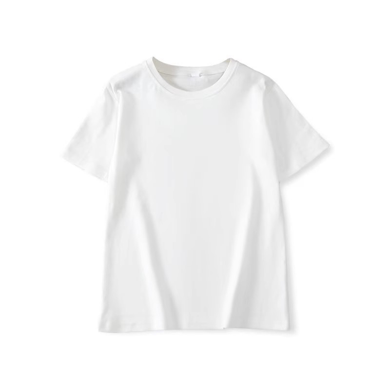 White-round neck short-sleeved t-shirt solid color [pure cotton fabric]