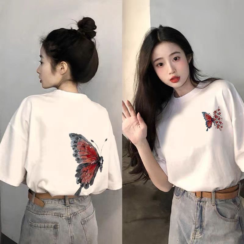 White-a61 before and after picture half red butterfly [pure cotton fabric]