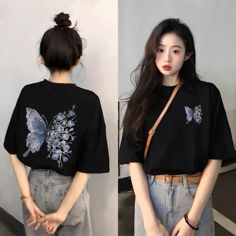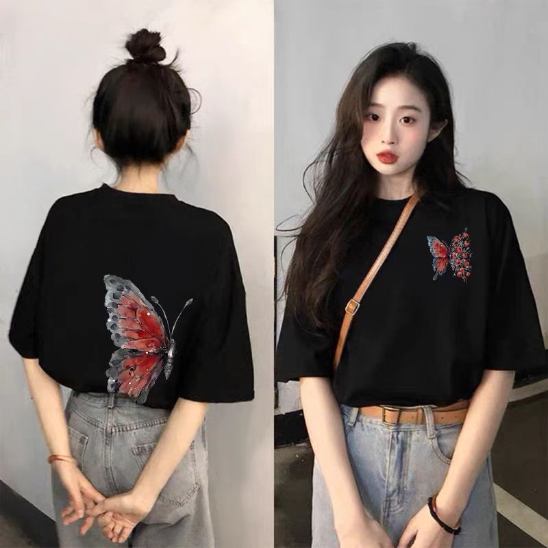 Black-a61 before and after picture half red butterfly [pure cotton fabric]