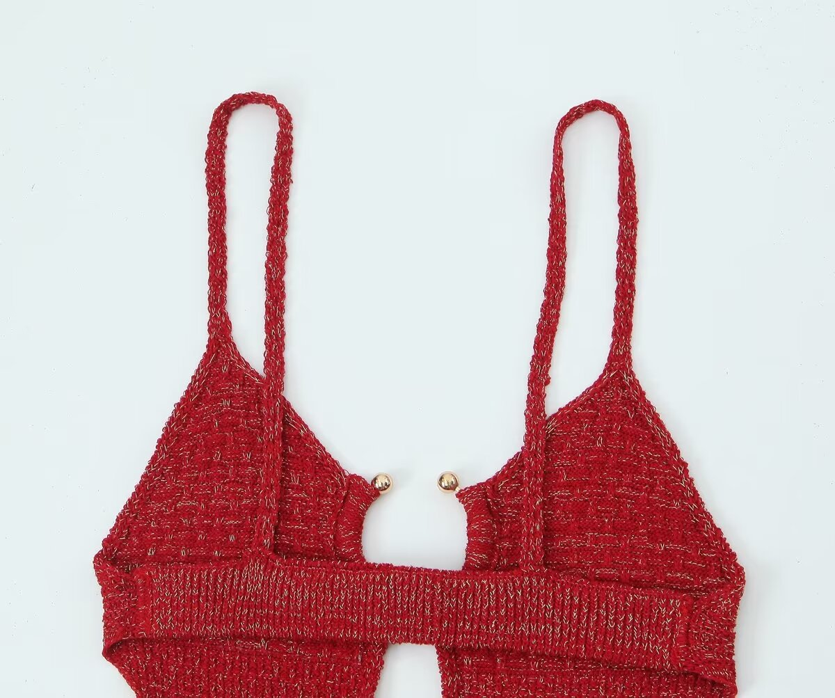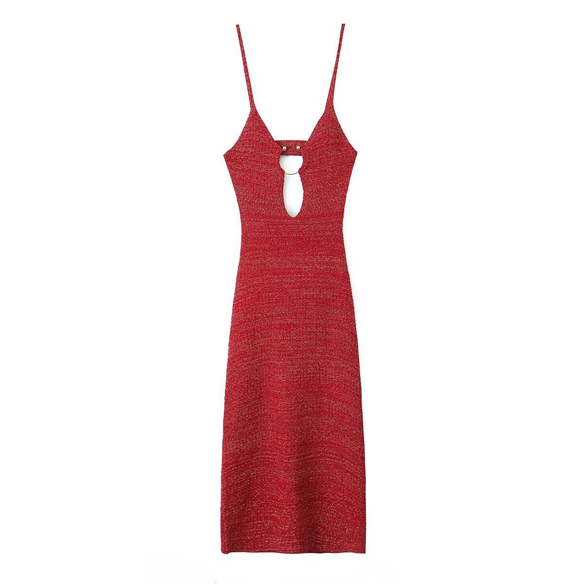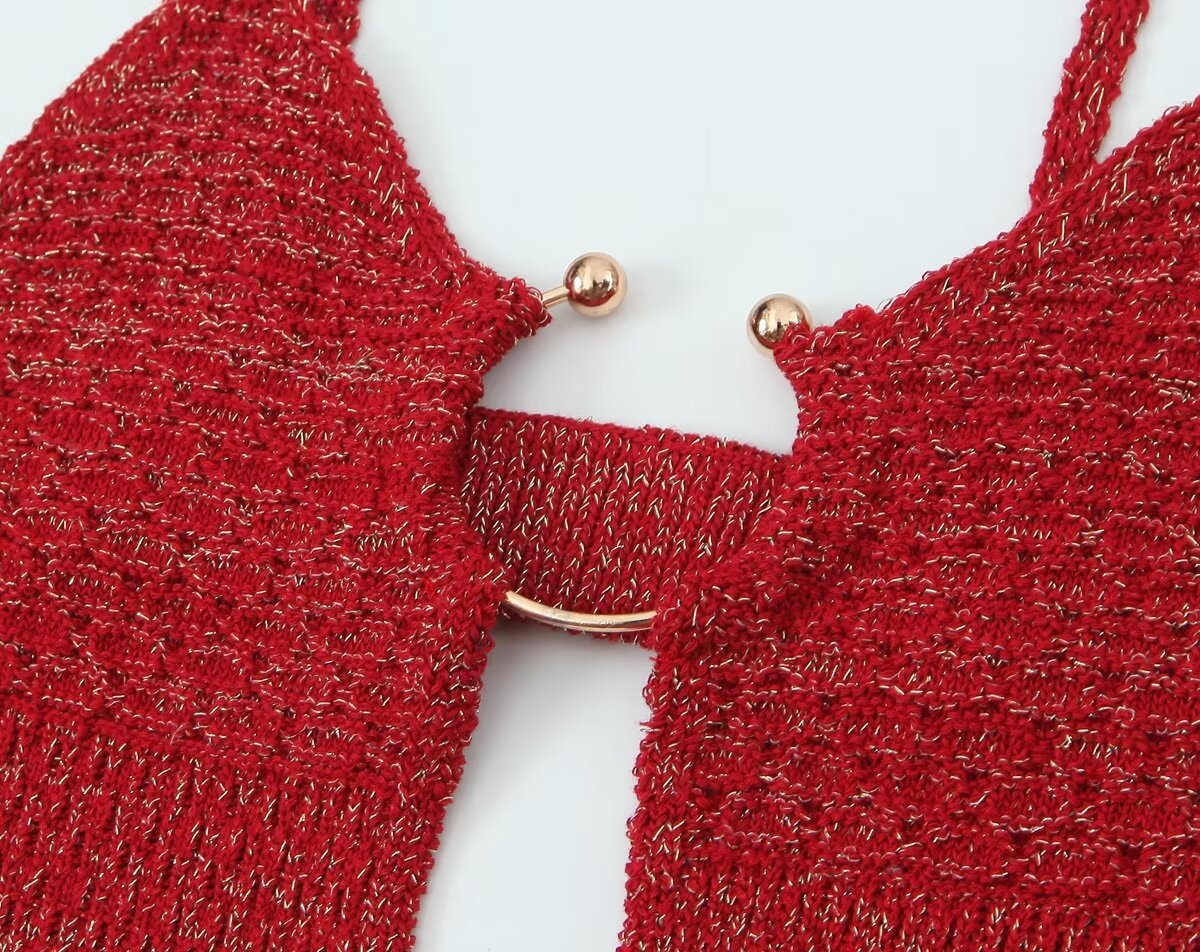 Za Cross-Border Women's Clothing Wholesale French Sexy Deep V Neck Open Buckle Gold Silk Knitted Backless Suspender Dress