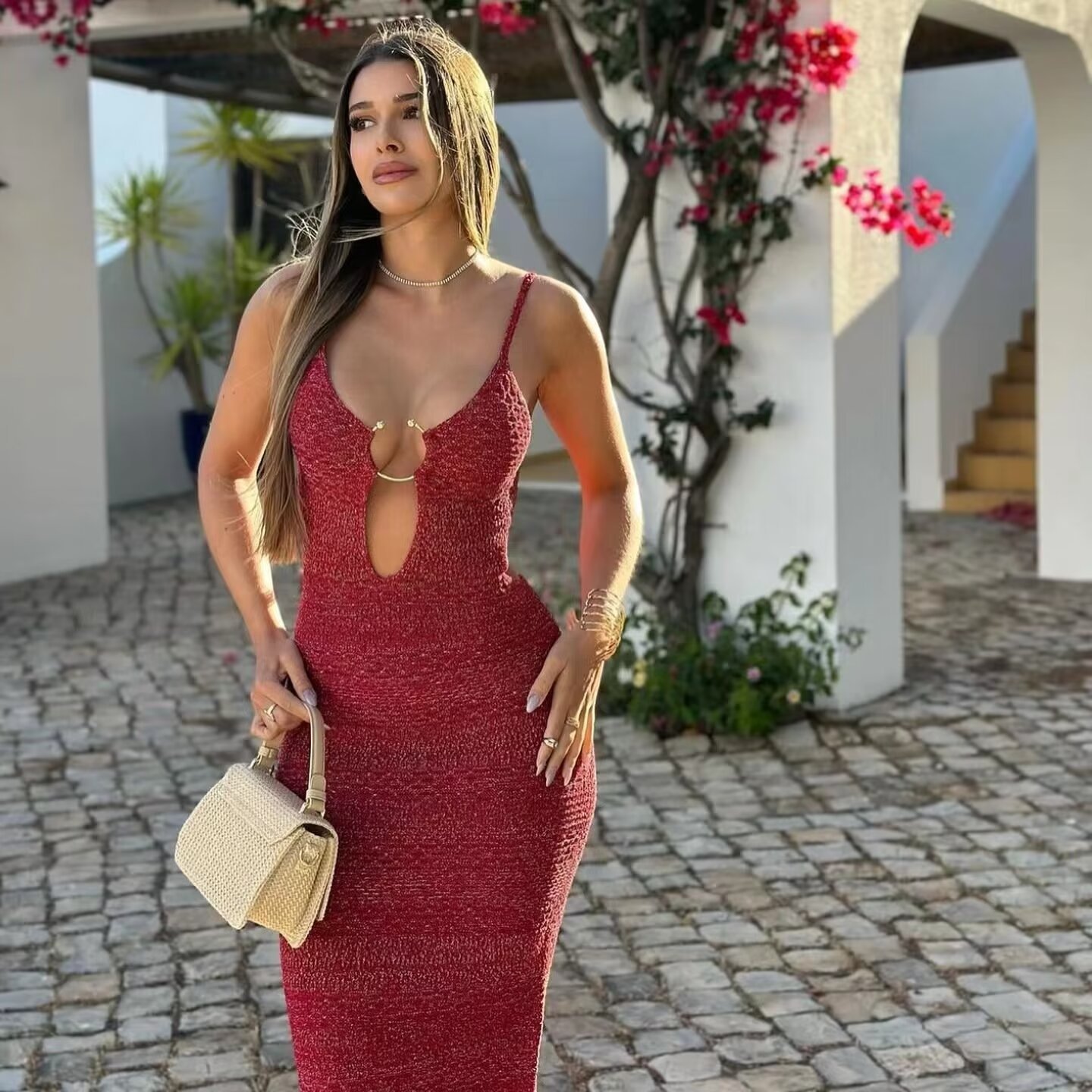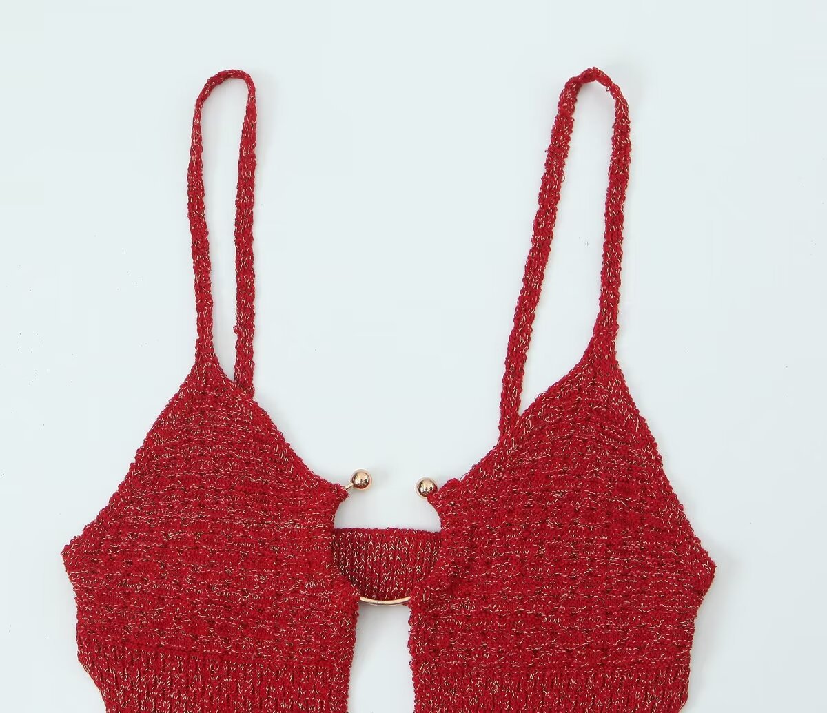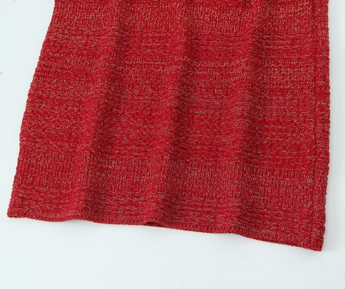Za Cross-Border Women's Clothing Wholesale French Sexy Deep V Neck Open Buckle Gold Silk Knitted Backless Suspender Dress
