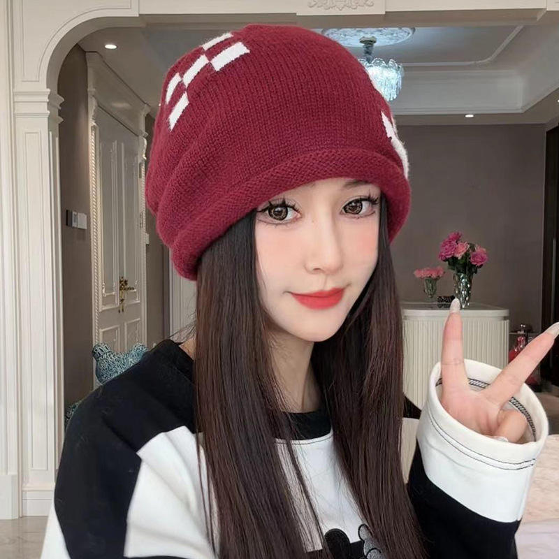 Checkerboard beanie - burgundy