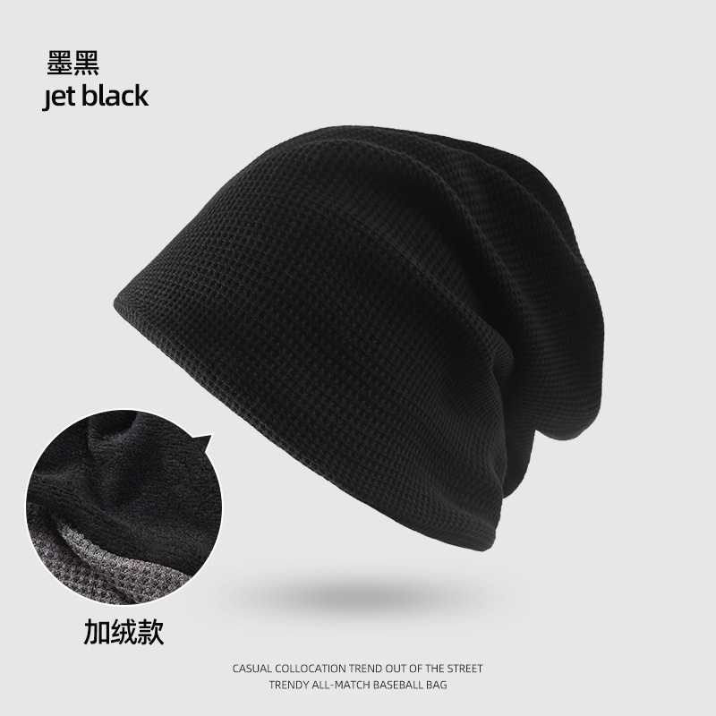 Waffle knit slouchy beanie - jet black