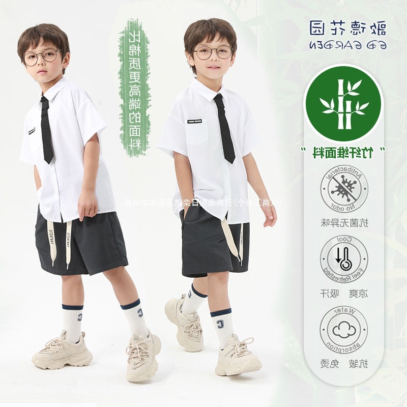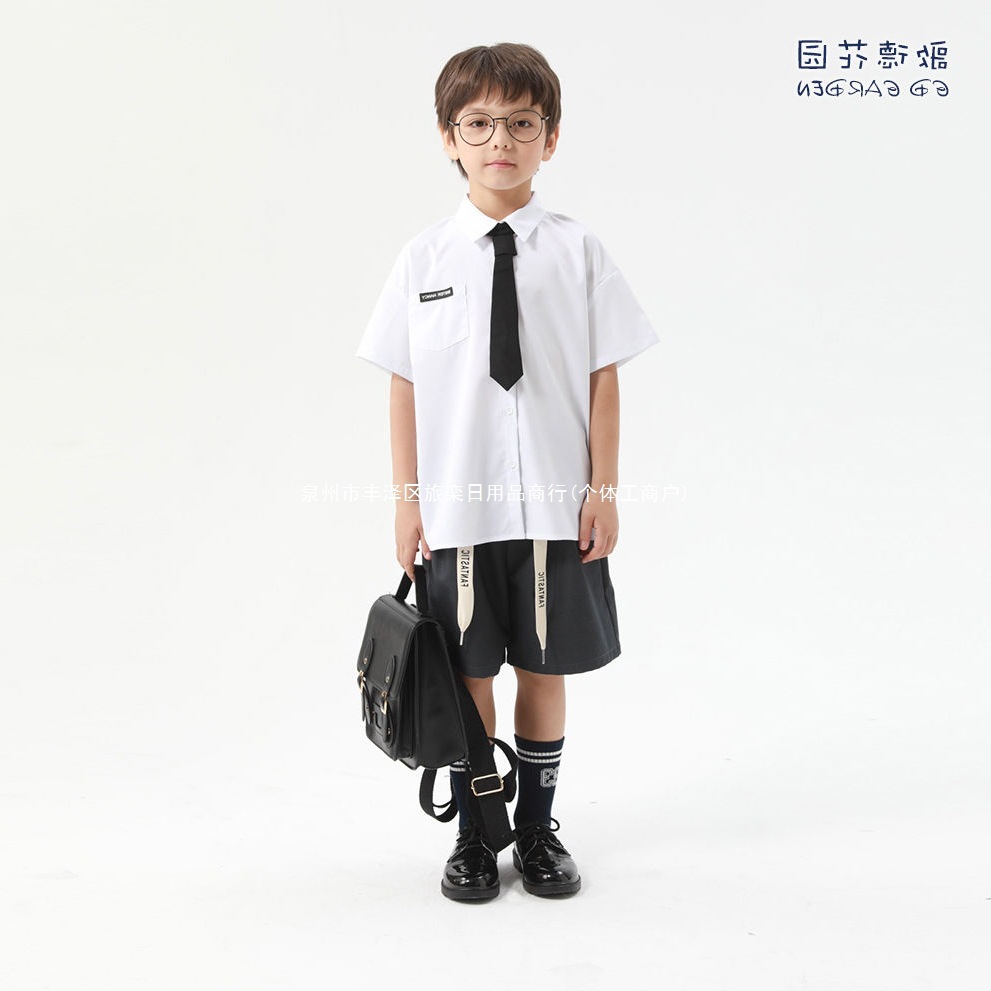 White shirt, gray shorts, tie, high quality anti-wrinkle and super cool material