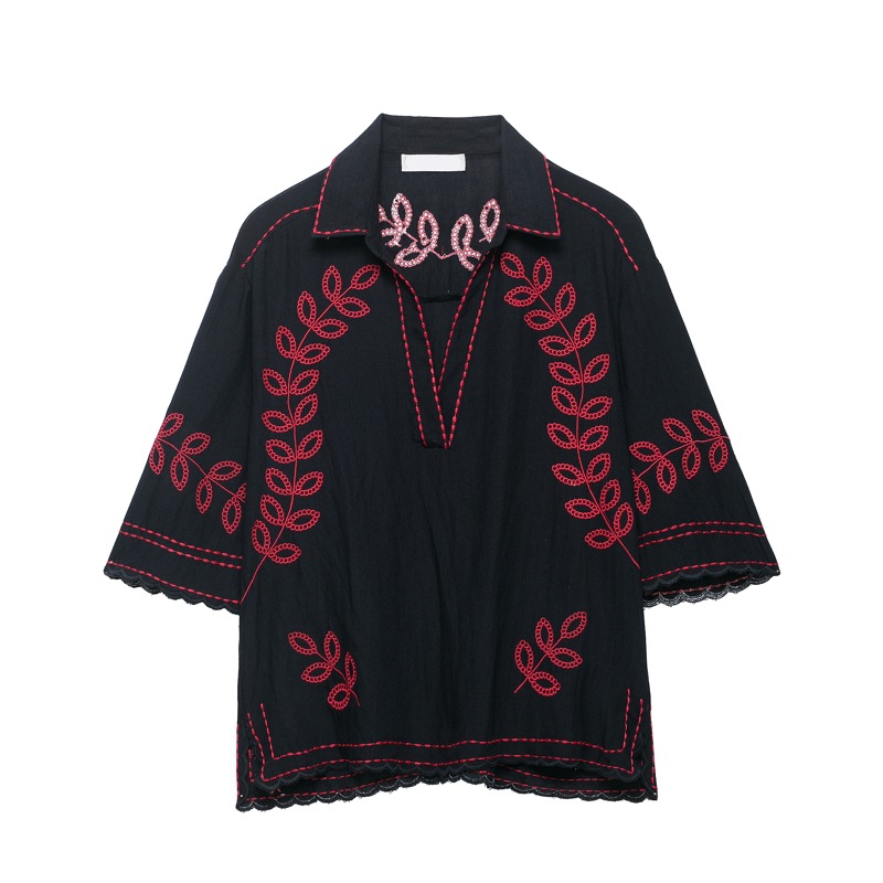 Kaopu Za European and American Style New 2025 Spring and Summer Women's Fashion Retro Embroidered Shirt Tops with Versatile Design