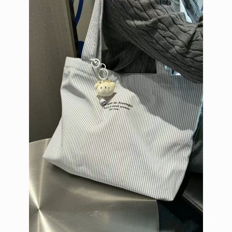 New Casual Striped Lazy Simple Large Capacity 2024 Commuter Canvas Bag Versatile Shoulder Tote
