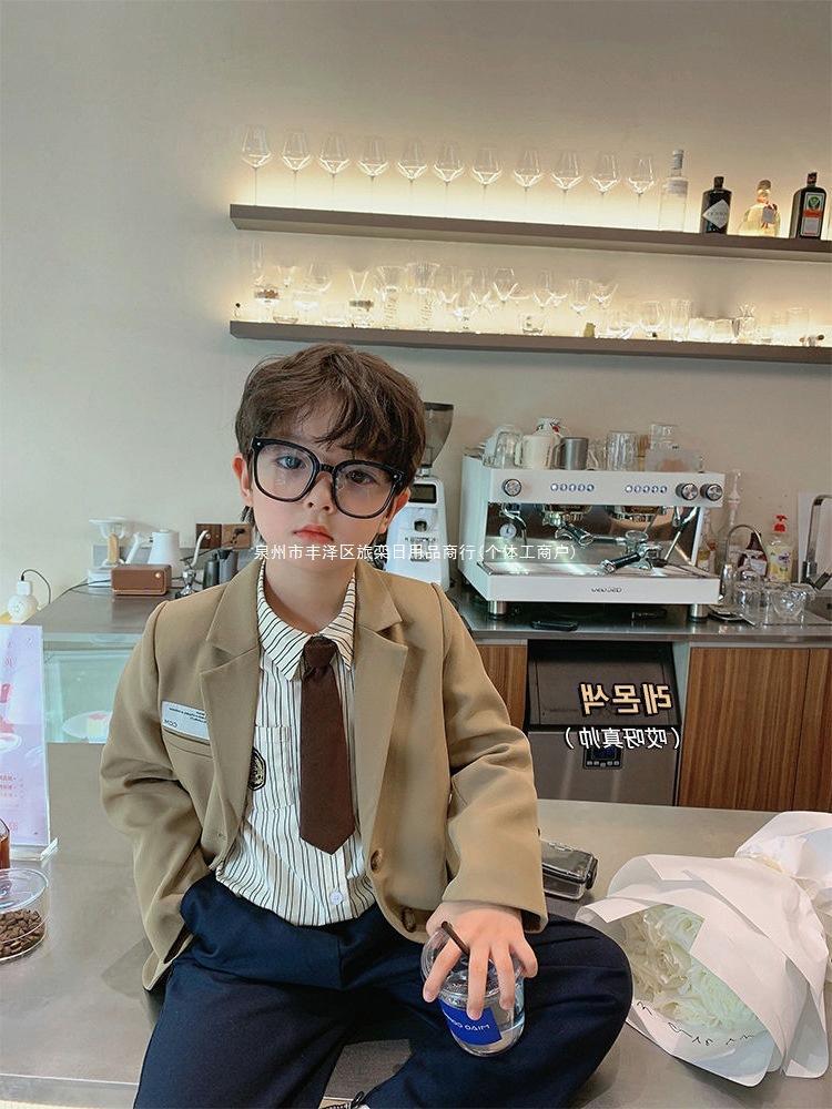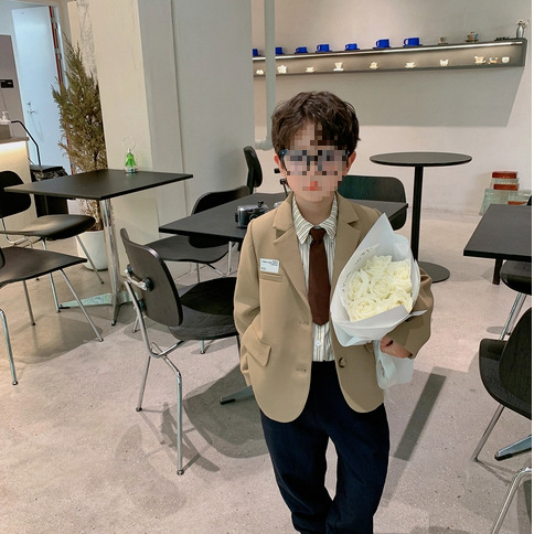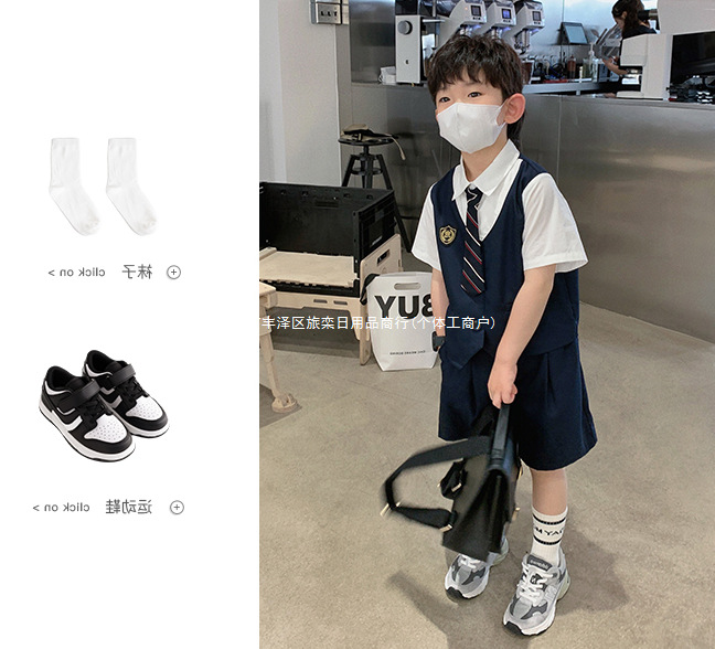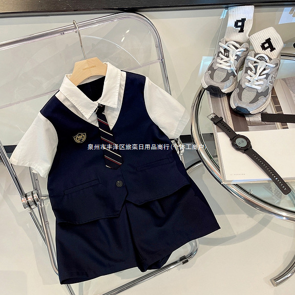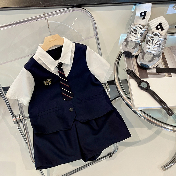 Children's Suit Jk Academy Style Set Ins Trendy Children's Stylish Fake Two-Piece White Shirt Tie Flower Boy Performance
