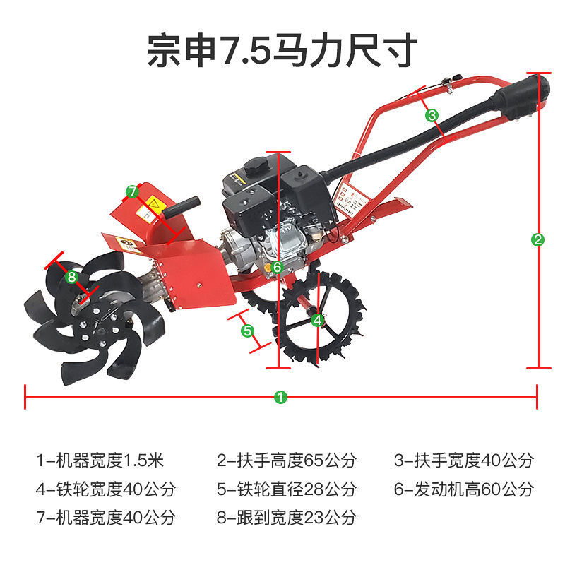 Machine 7.5 horsepower + trenching deep trench tiller weeding tire-zongshen
