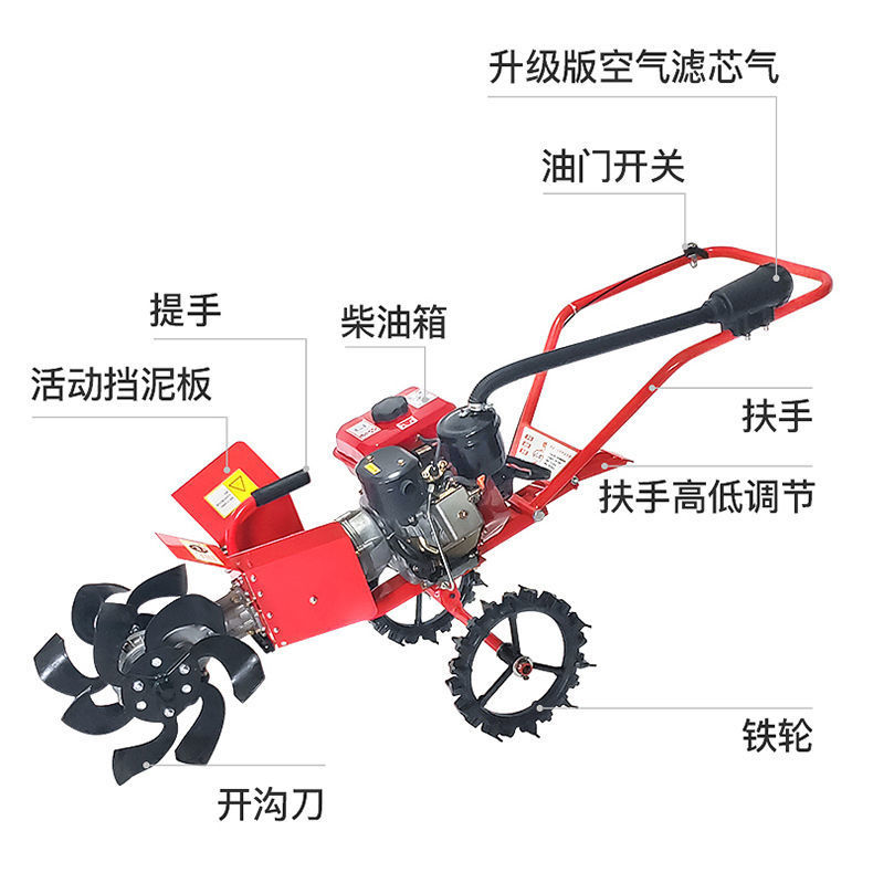 Machine 7.5 horsepower + trenching deep trench tiller weeding tire-diesel engine