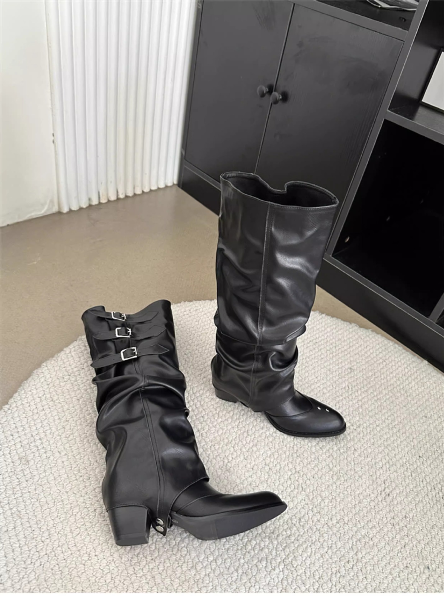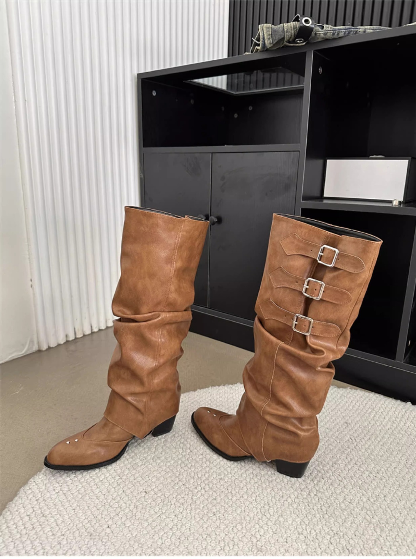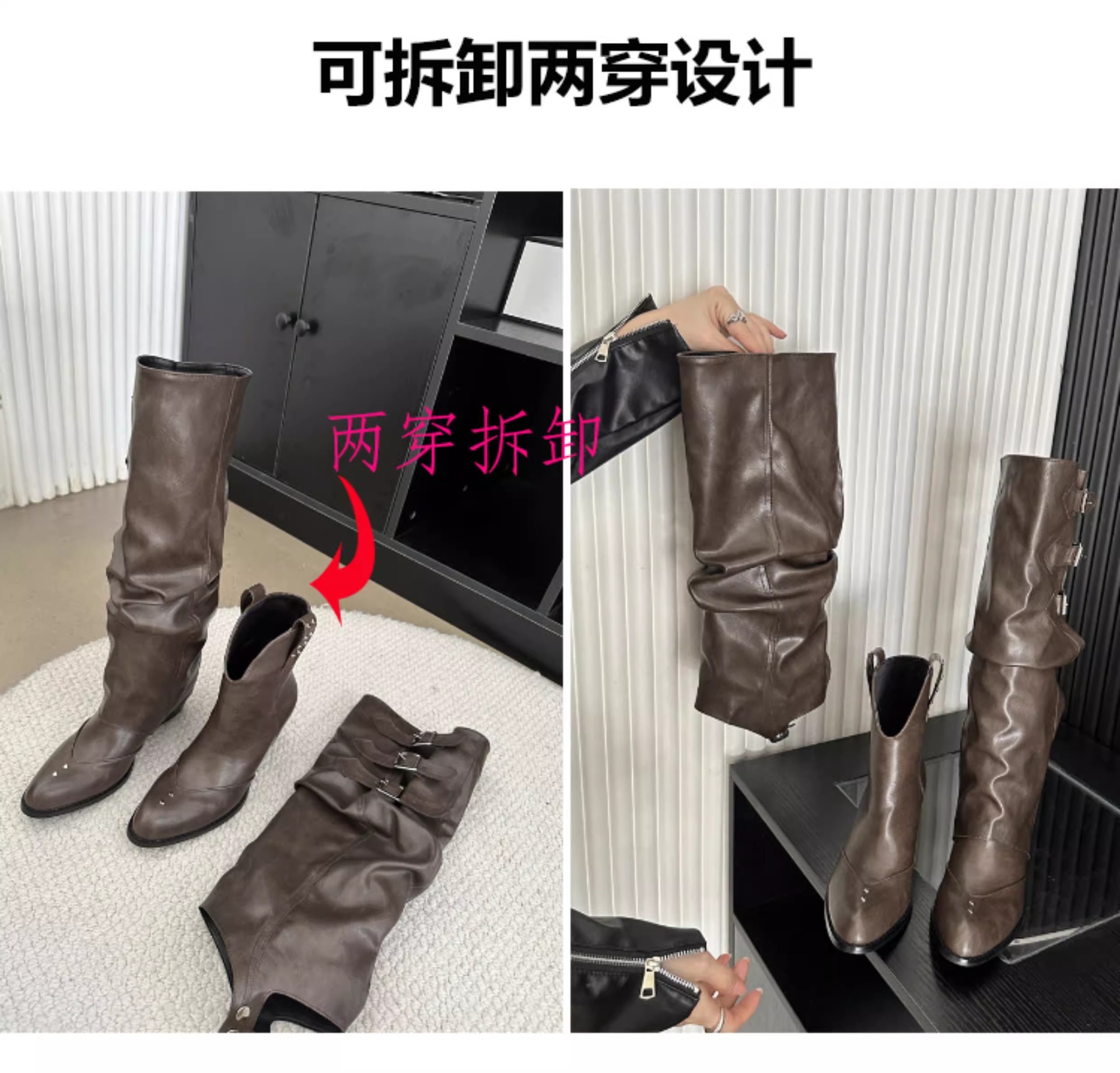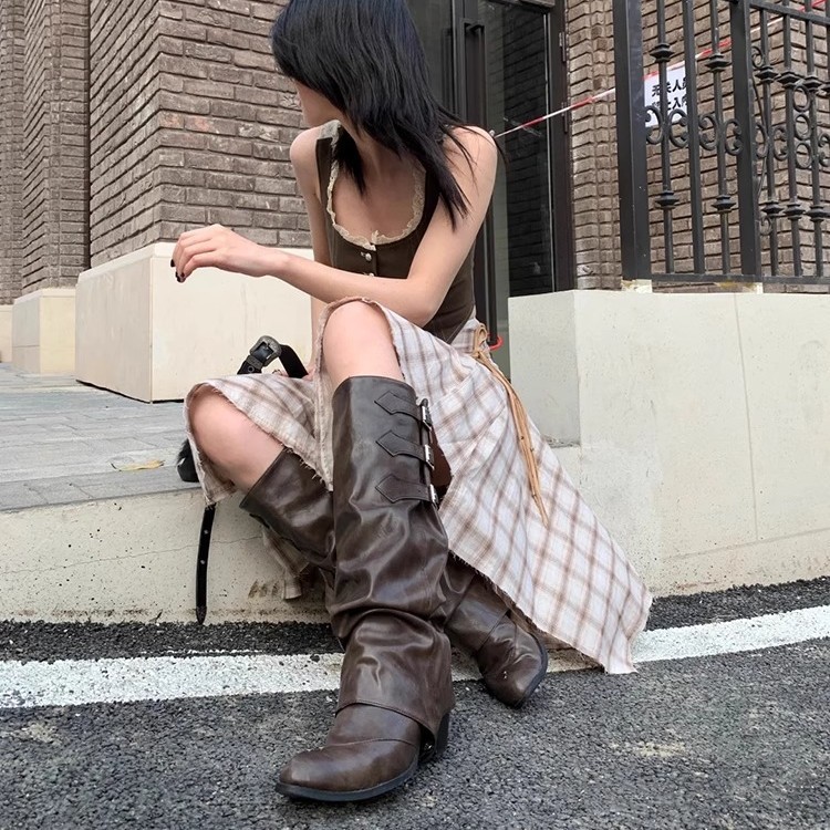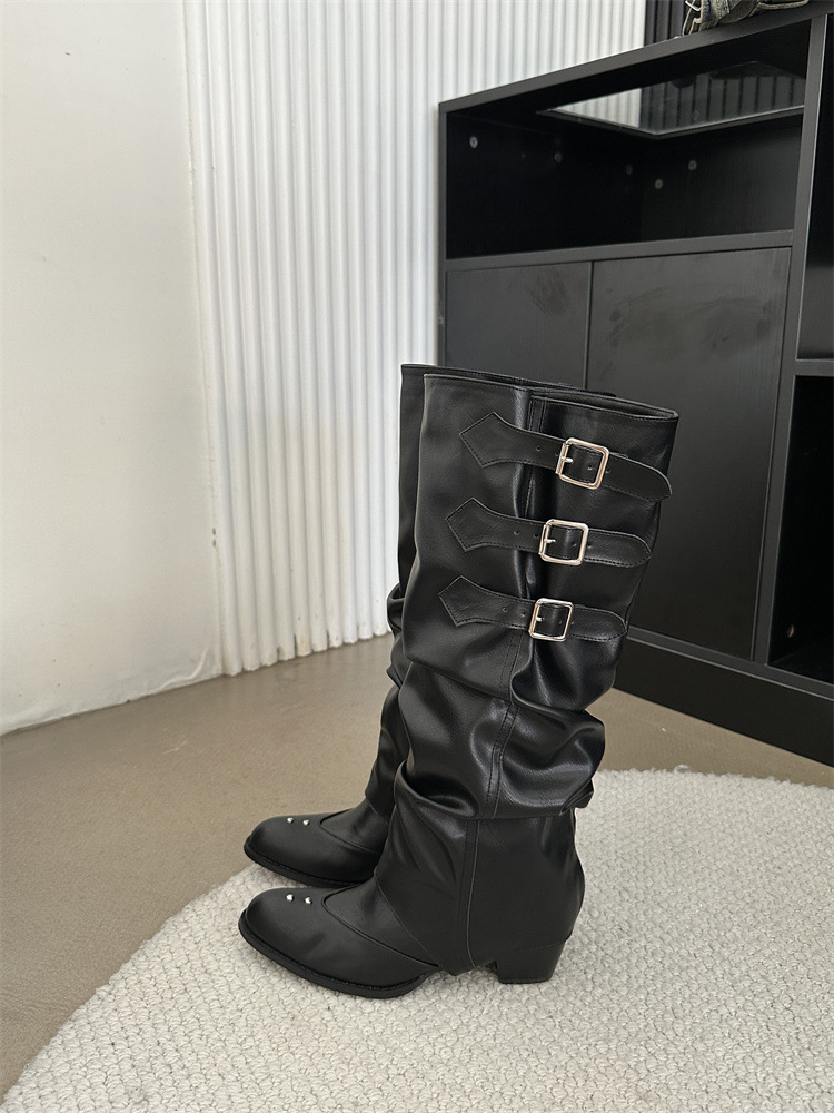 Two-Way Wear Belt Buckle Long Boots 2026 Autumn and Winter New Punk Style Pointed Toe Western Cowboy Boots Retro Versatile Riding Boots