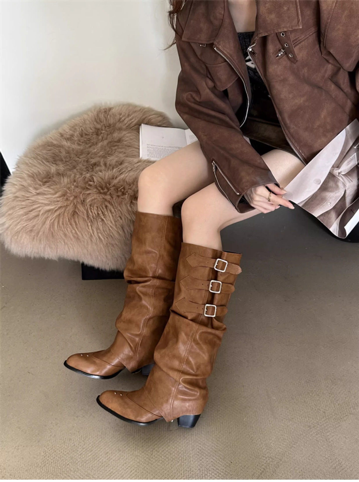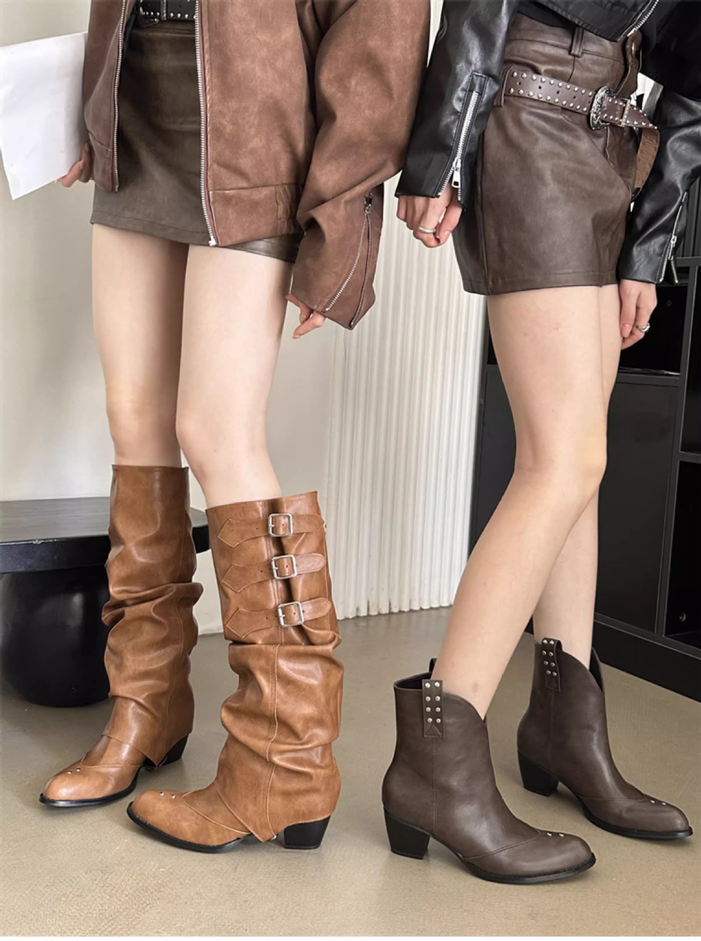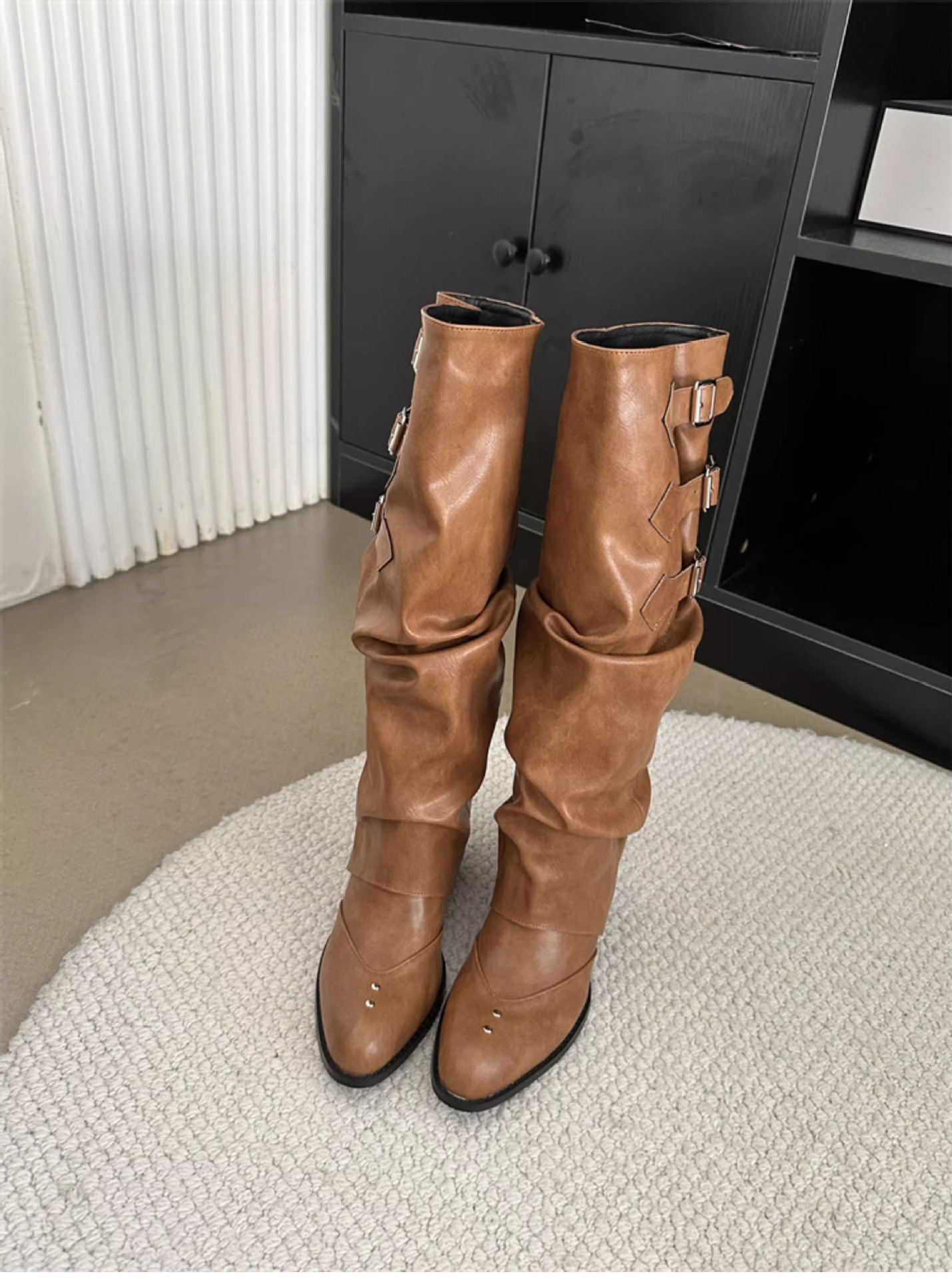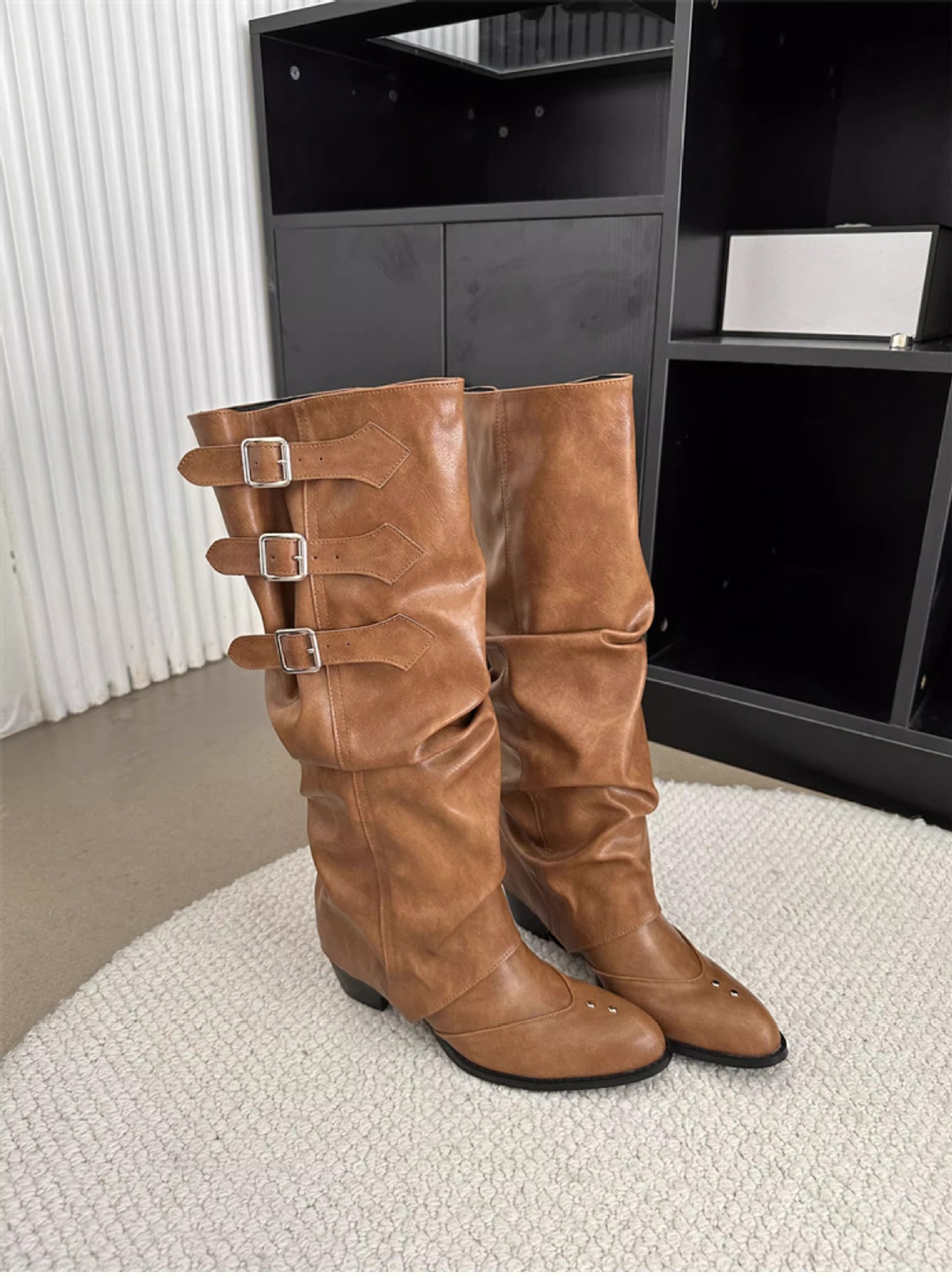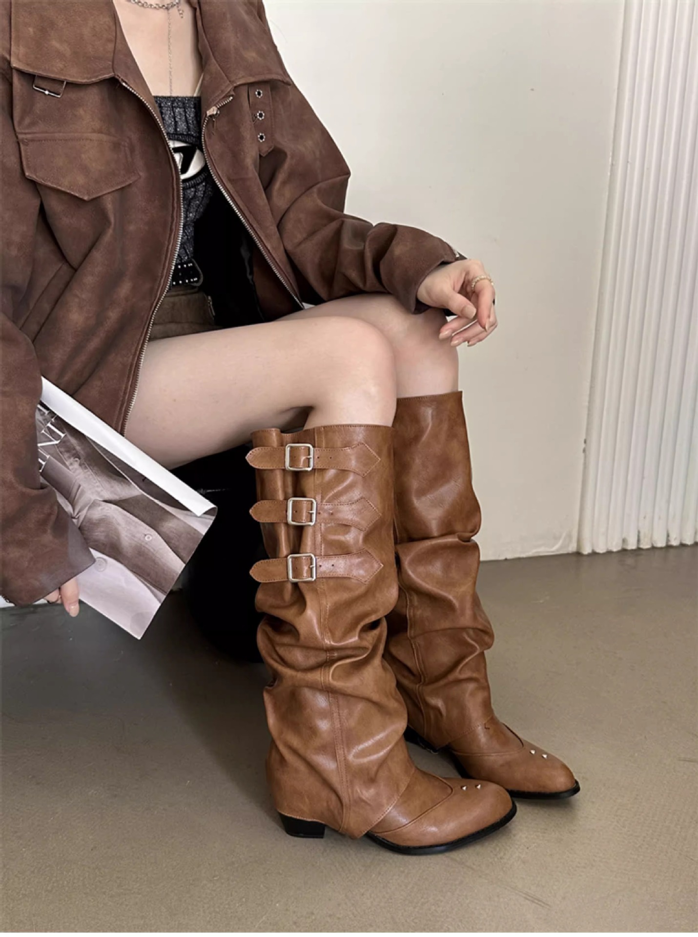 Two-Way Wear Belt Buckle Long Boots 2026 Autumn and Winter New Punk Style Pointed Toe Western Cowboy Boots Retro Versatile Riding Boots