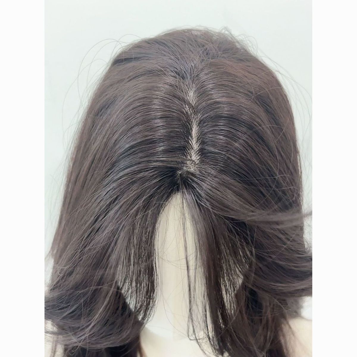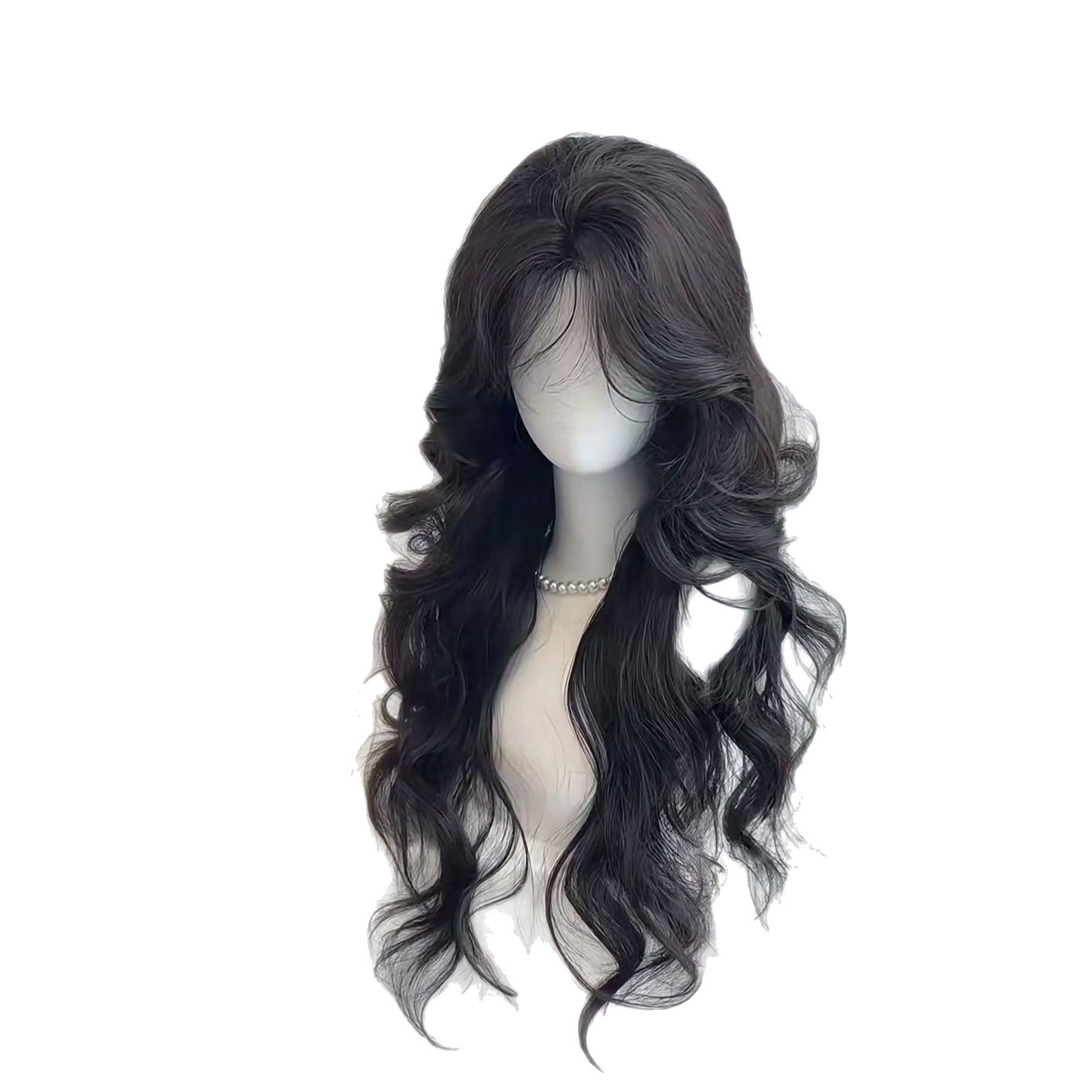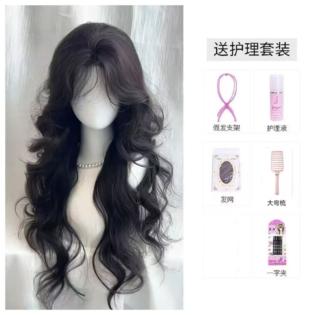 [Luxurious] Korean-Style Elegant Big Wave Black Tea-Colored Wig with Bangs for Women Full Headpiece
