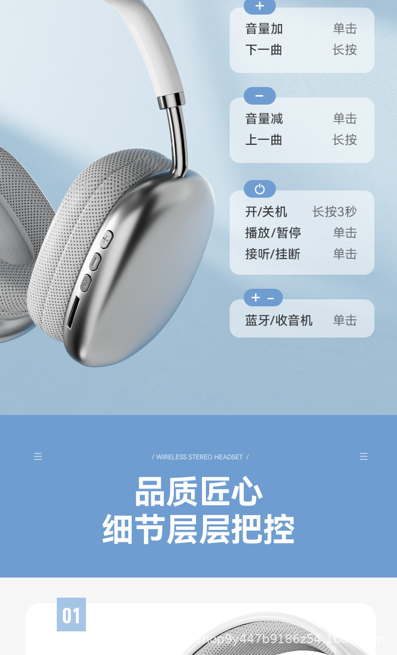 P9 three-button business white supports listening to music bluetooth headset official standard configuration
