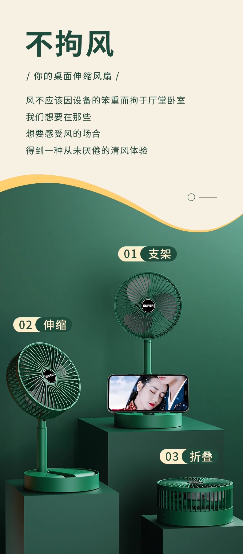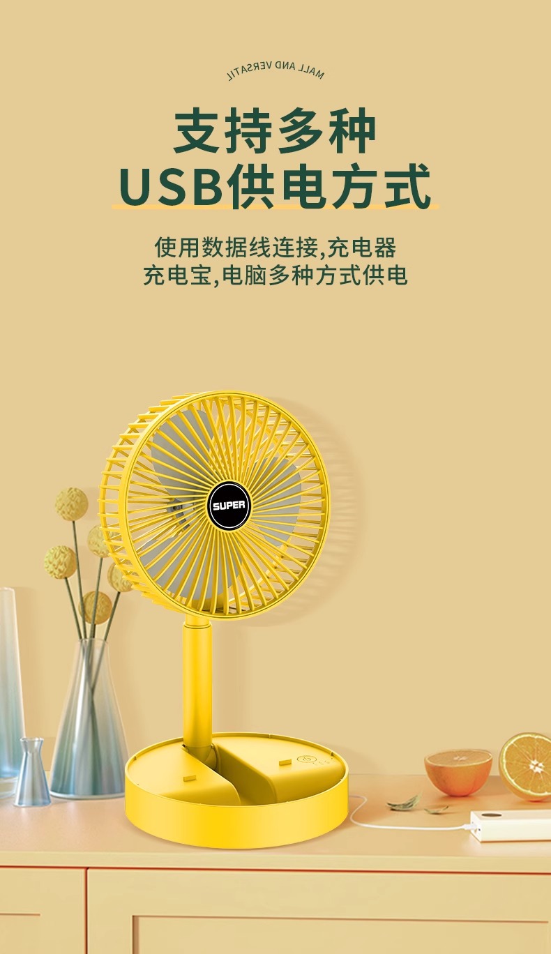 Desktop Fan Household Small USB Charging Portable Small Fan Telescopic Foldableing Office Student Dormitory Gift