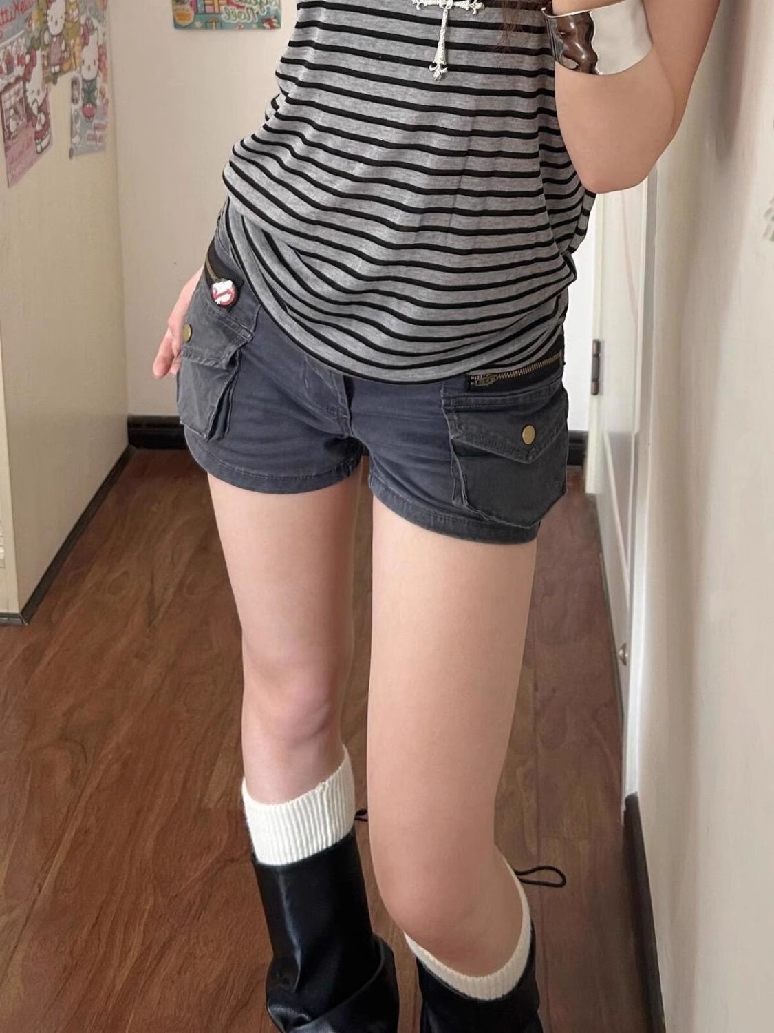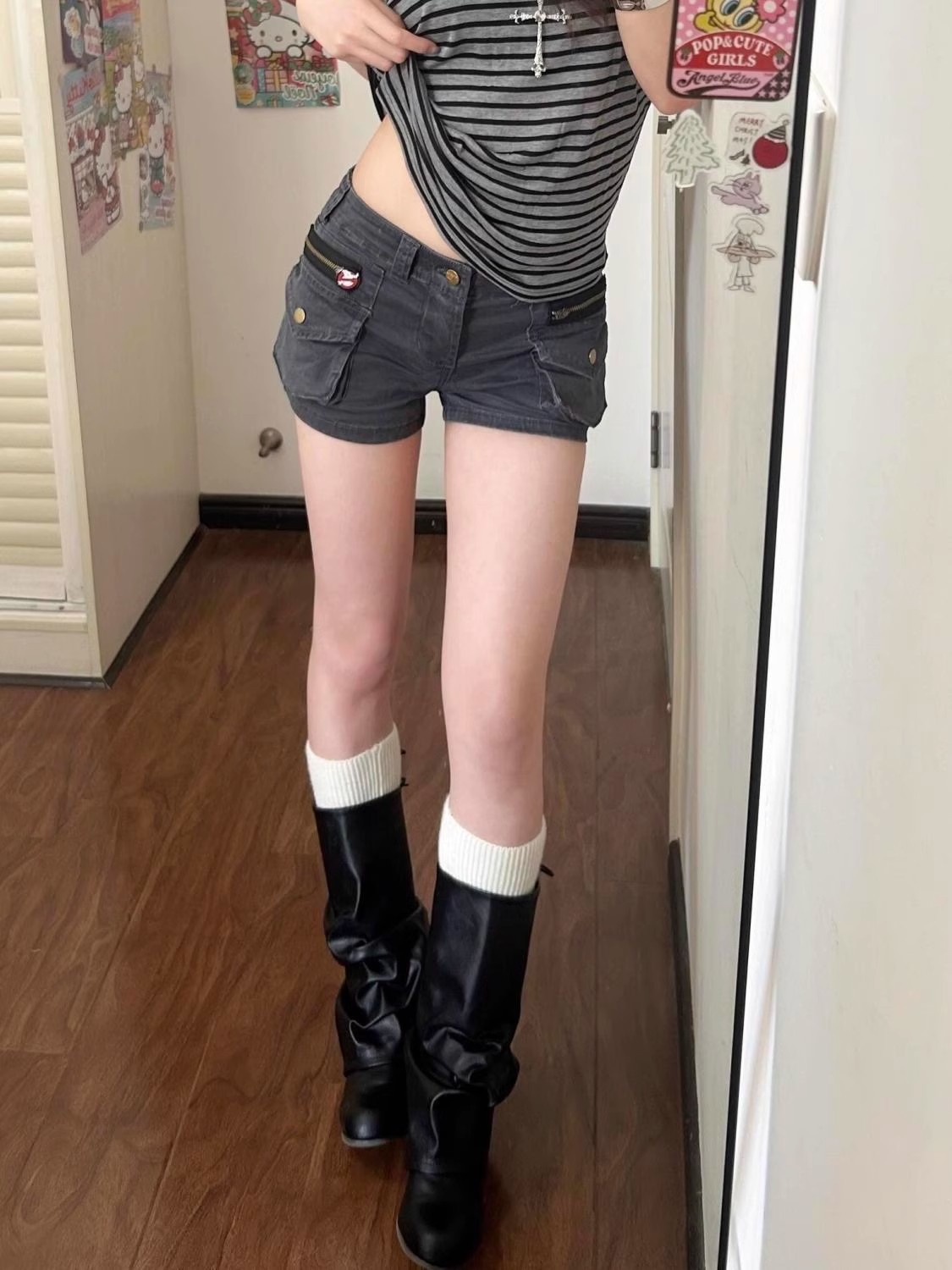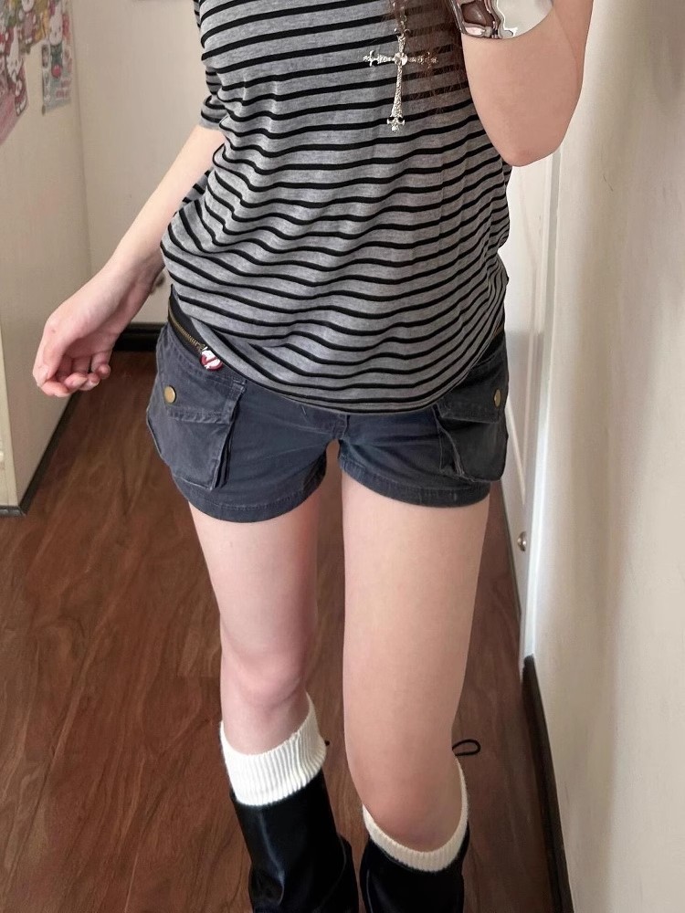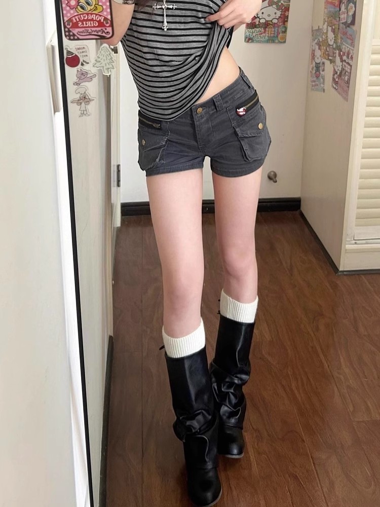Plus-Size American Retro Workwear Pocket Denim Shorts for Women, Summer New Versatile Slimming A-Line Hot Pants Trendy