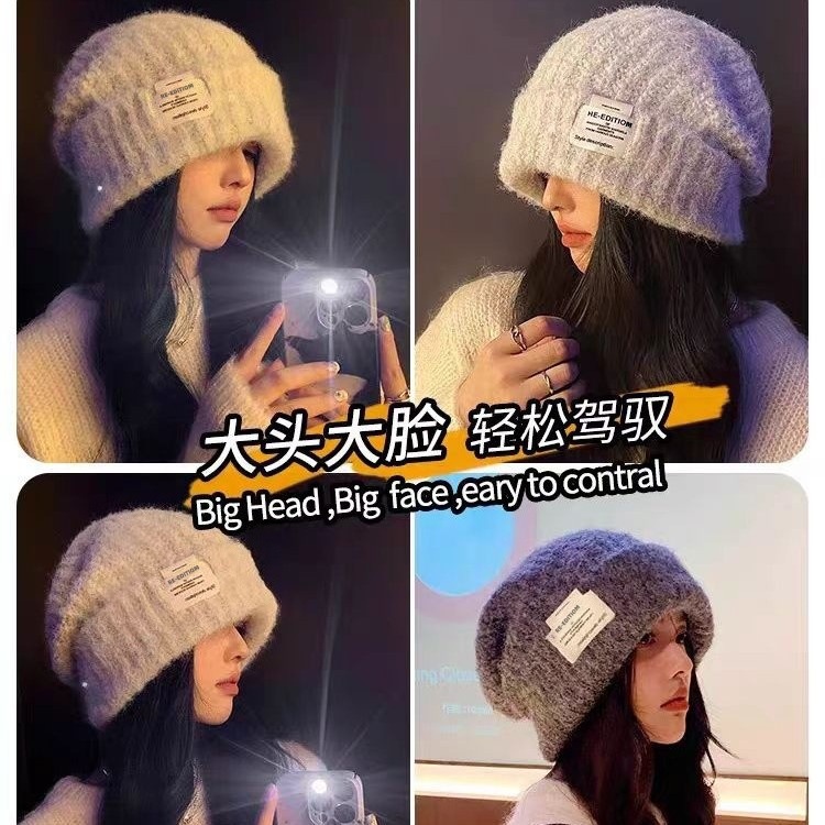 Women's Hat 2025 New Winter Warm Knit Hat Large Head Circumference Face-Slimming Loose Ear-Protecting Knitted Hat Korean Style Trendy