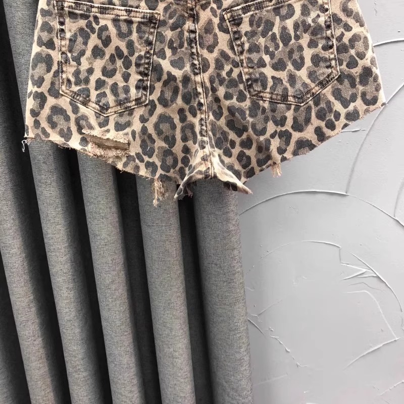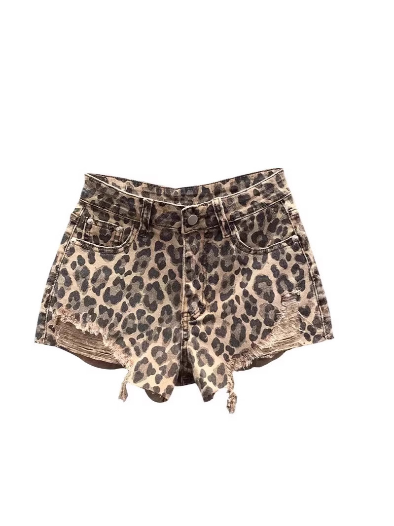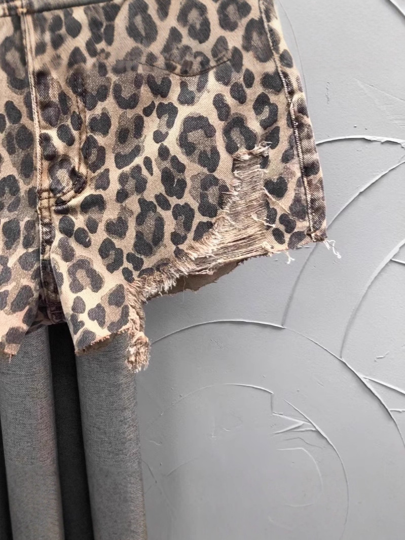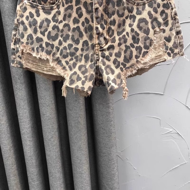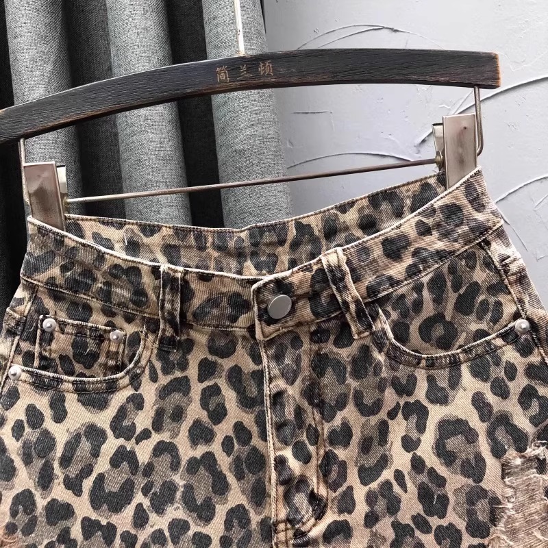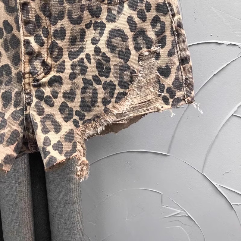 Trendy Leopard Print High-Waisted Denim Shorts for Women, Summer Fashion, Youthful A-Line Fringe Wide-Leg Hot Pants