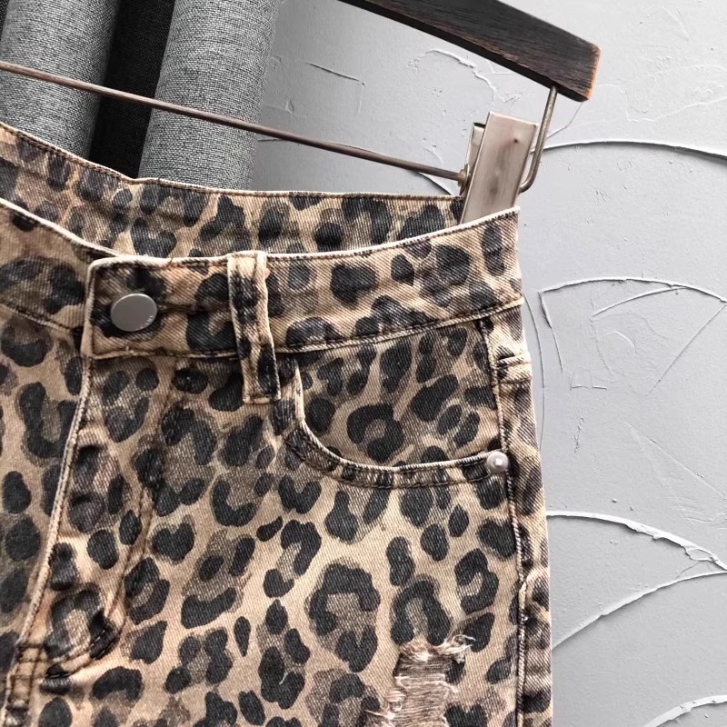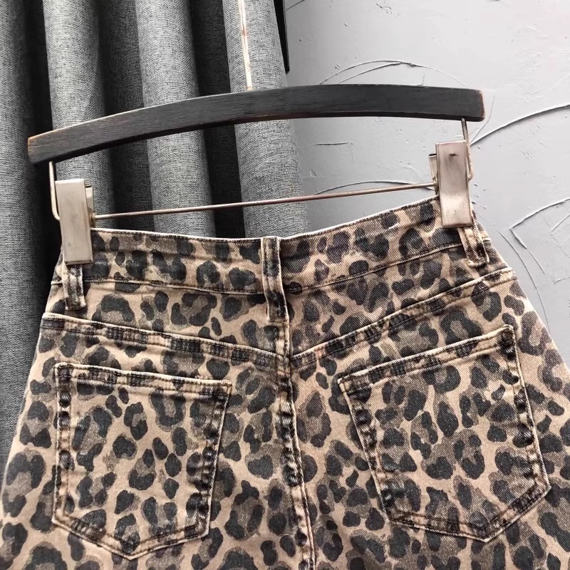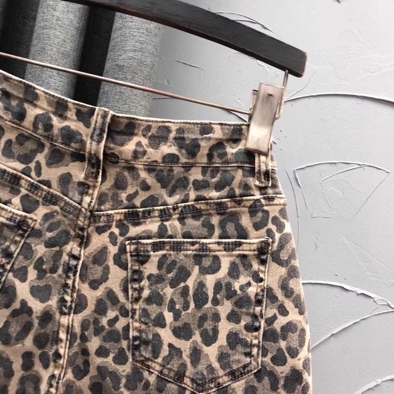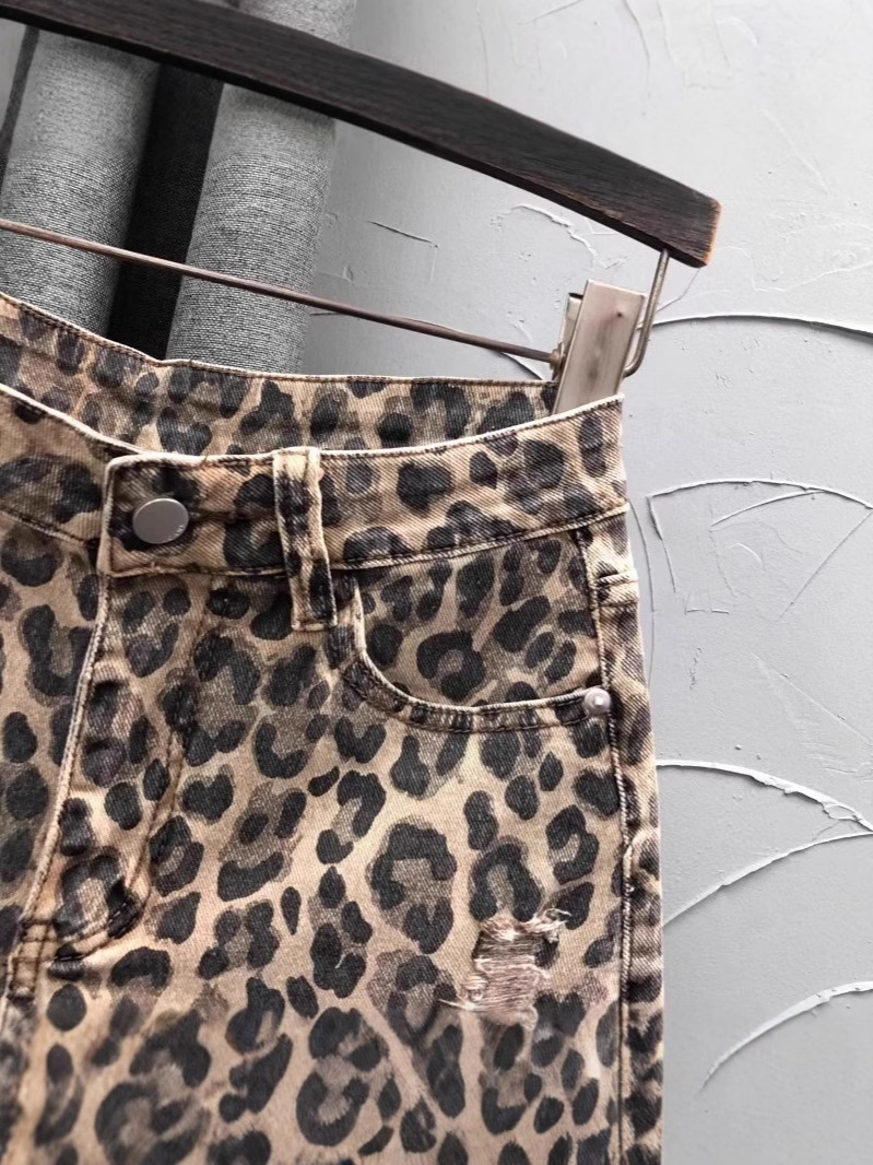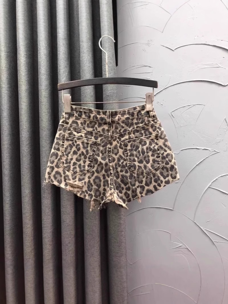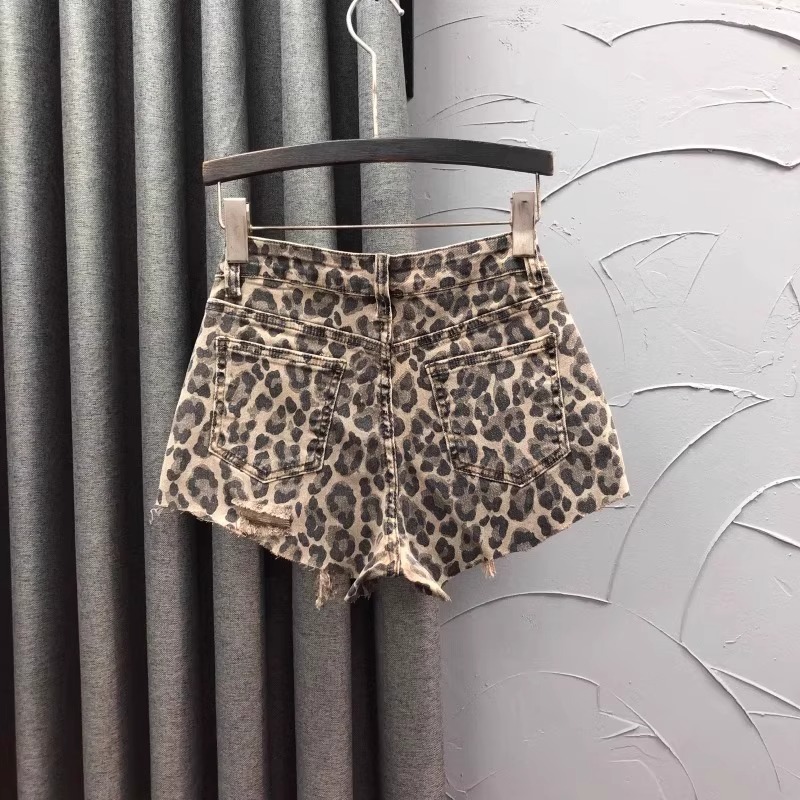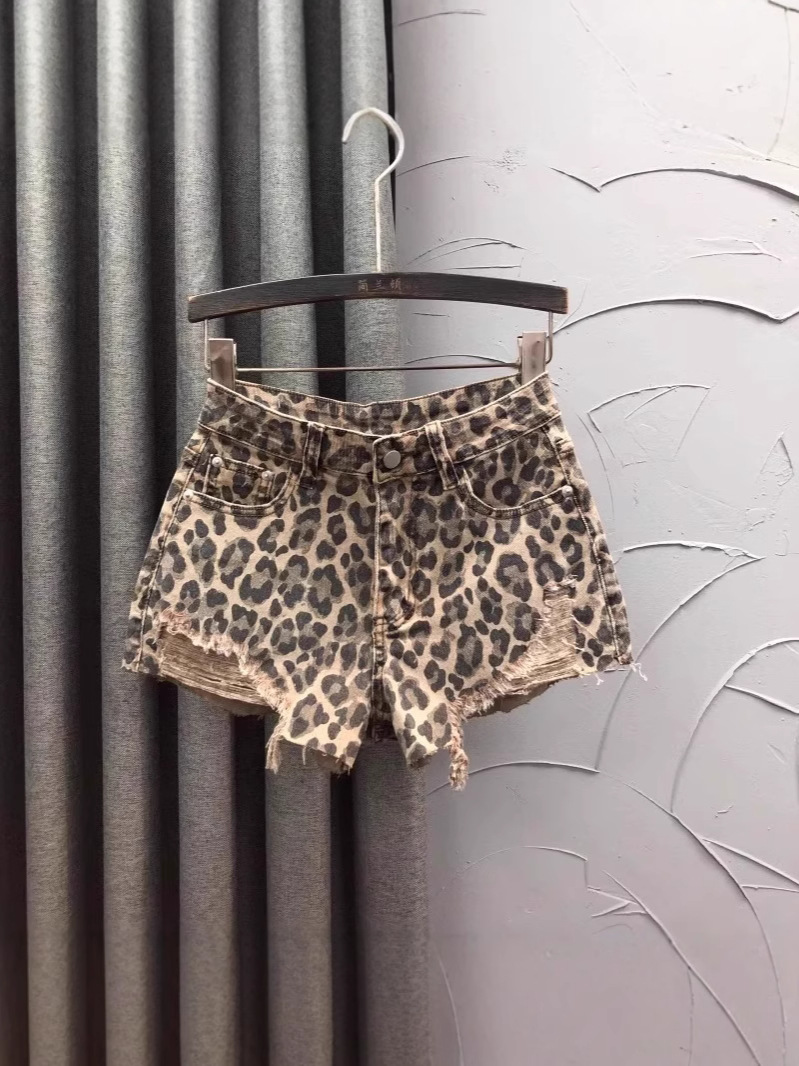 Trendy Leopard Print High-Waisted Denim Shorts for Women, Summer Fashion, Youthful A-Line Fringe Wide-Leg Hot Pants
