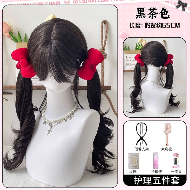 65cm micro-curly [black brown] + care set