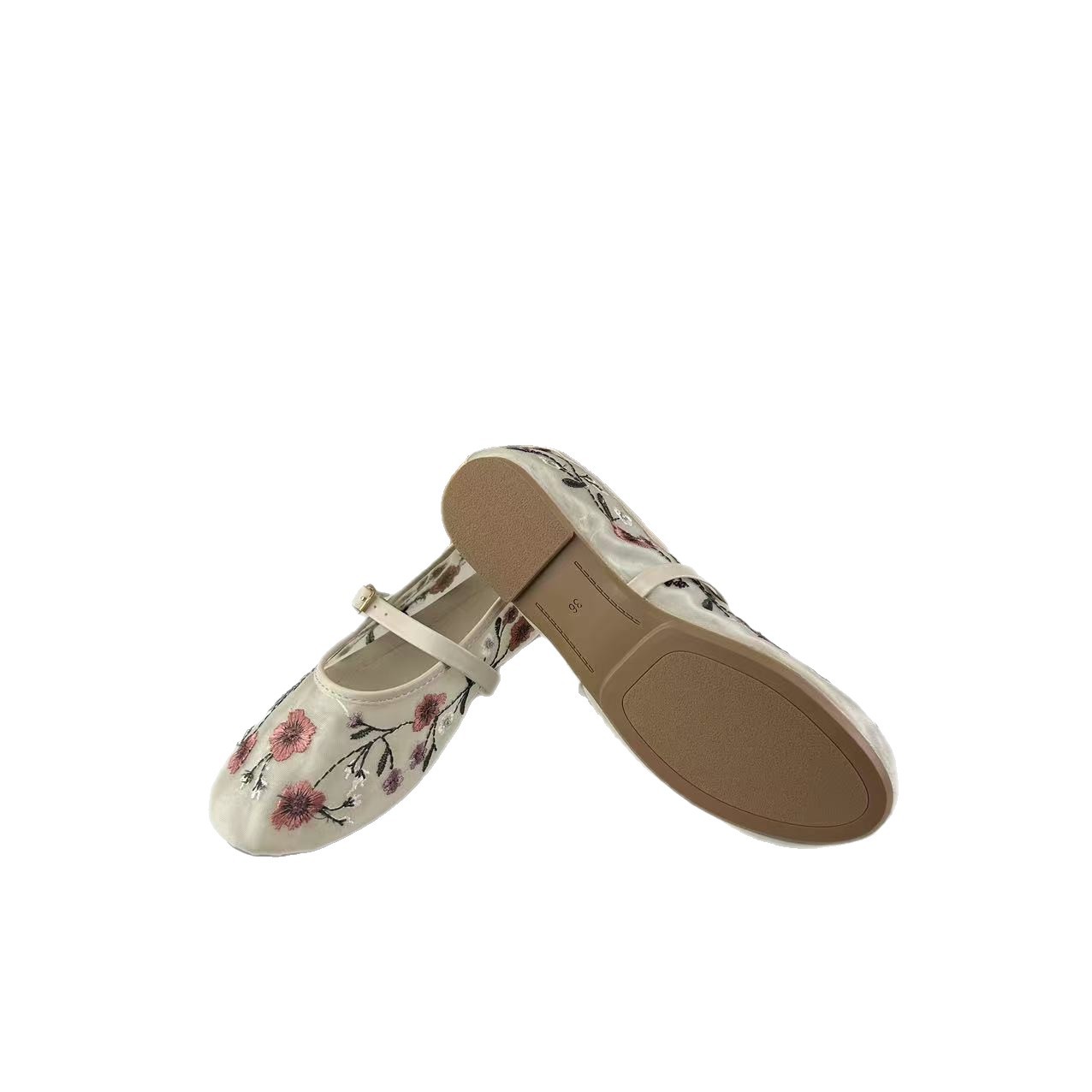 Za Spot 2025 New National Style New Chinoiserie Women's Shoes Mesh Embroider Flower Round Toe Flats Shoes Ballet Shoes