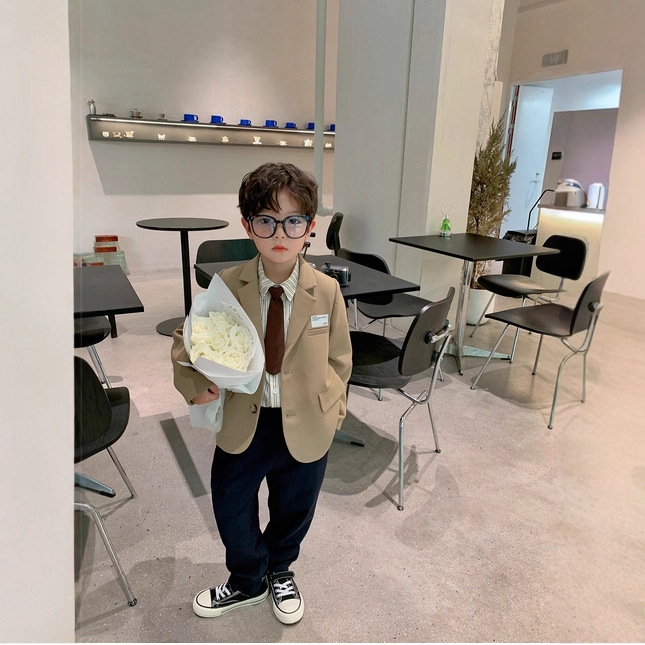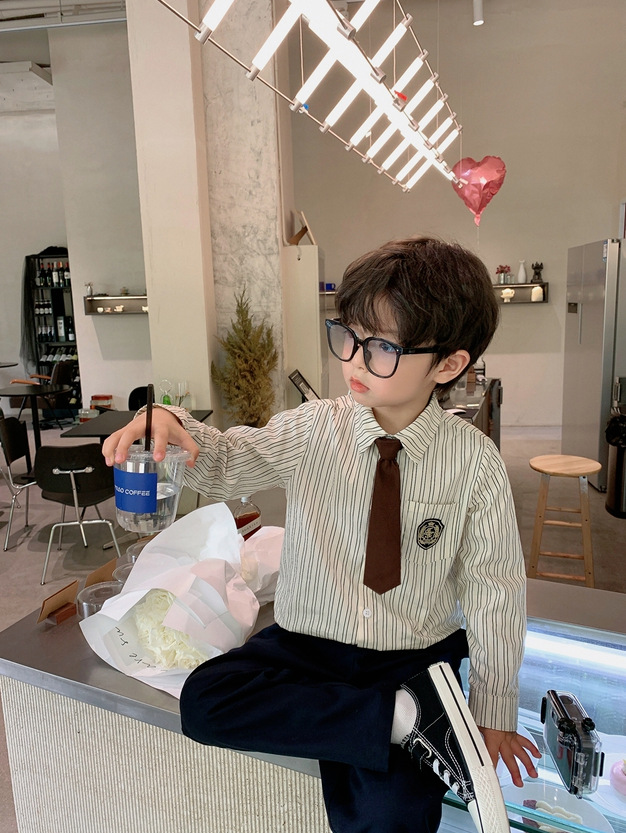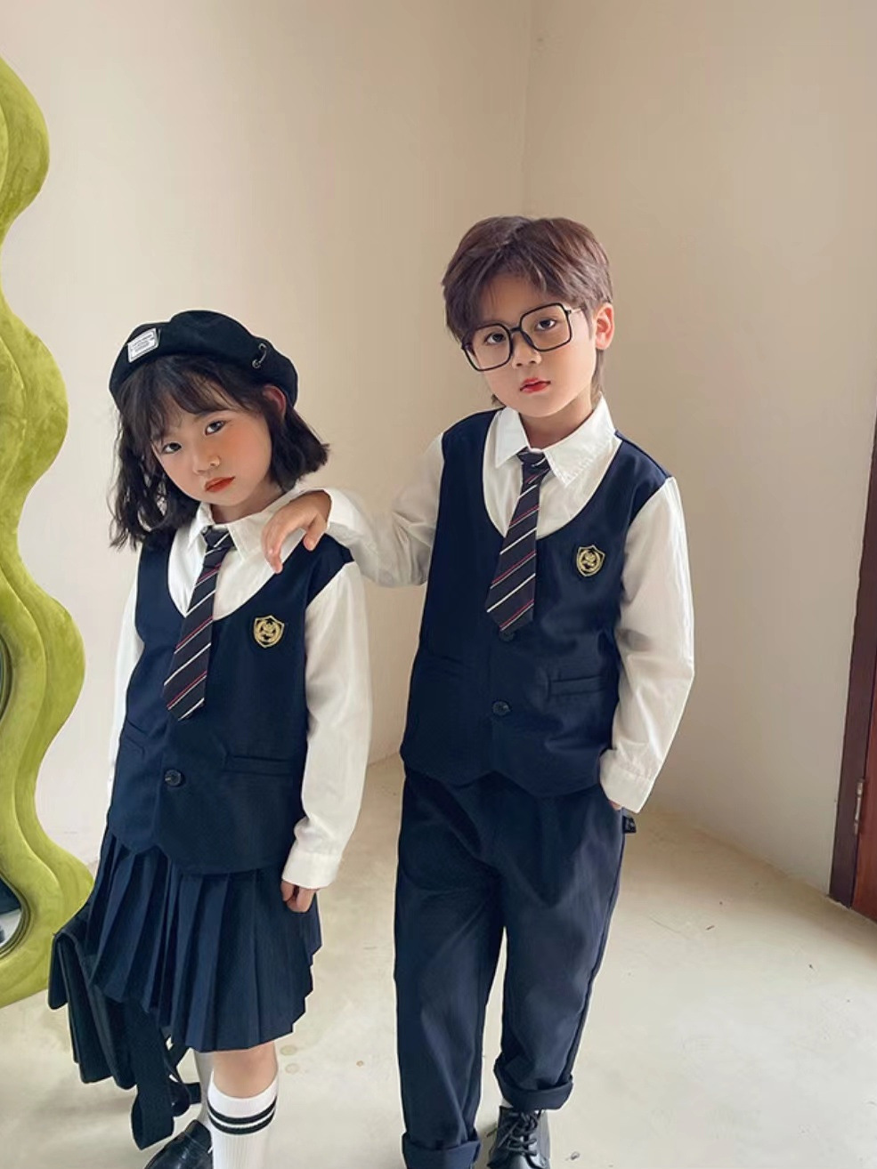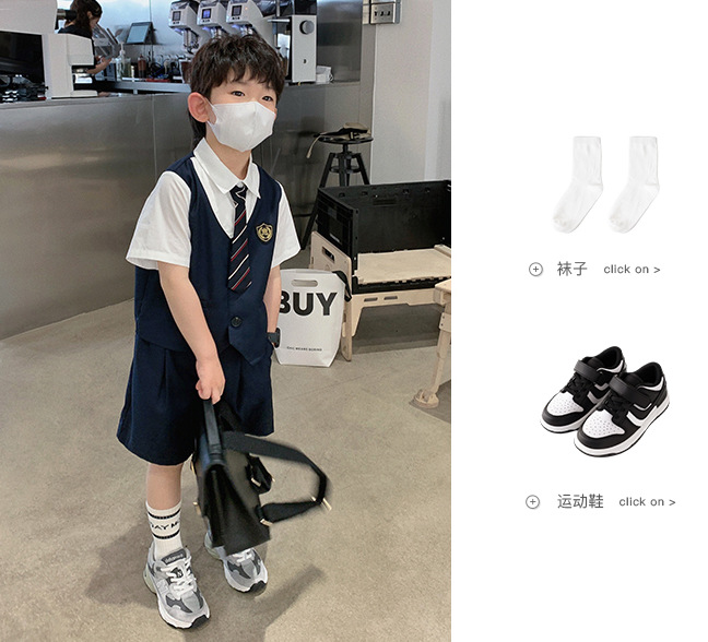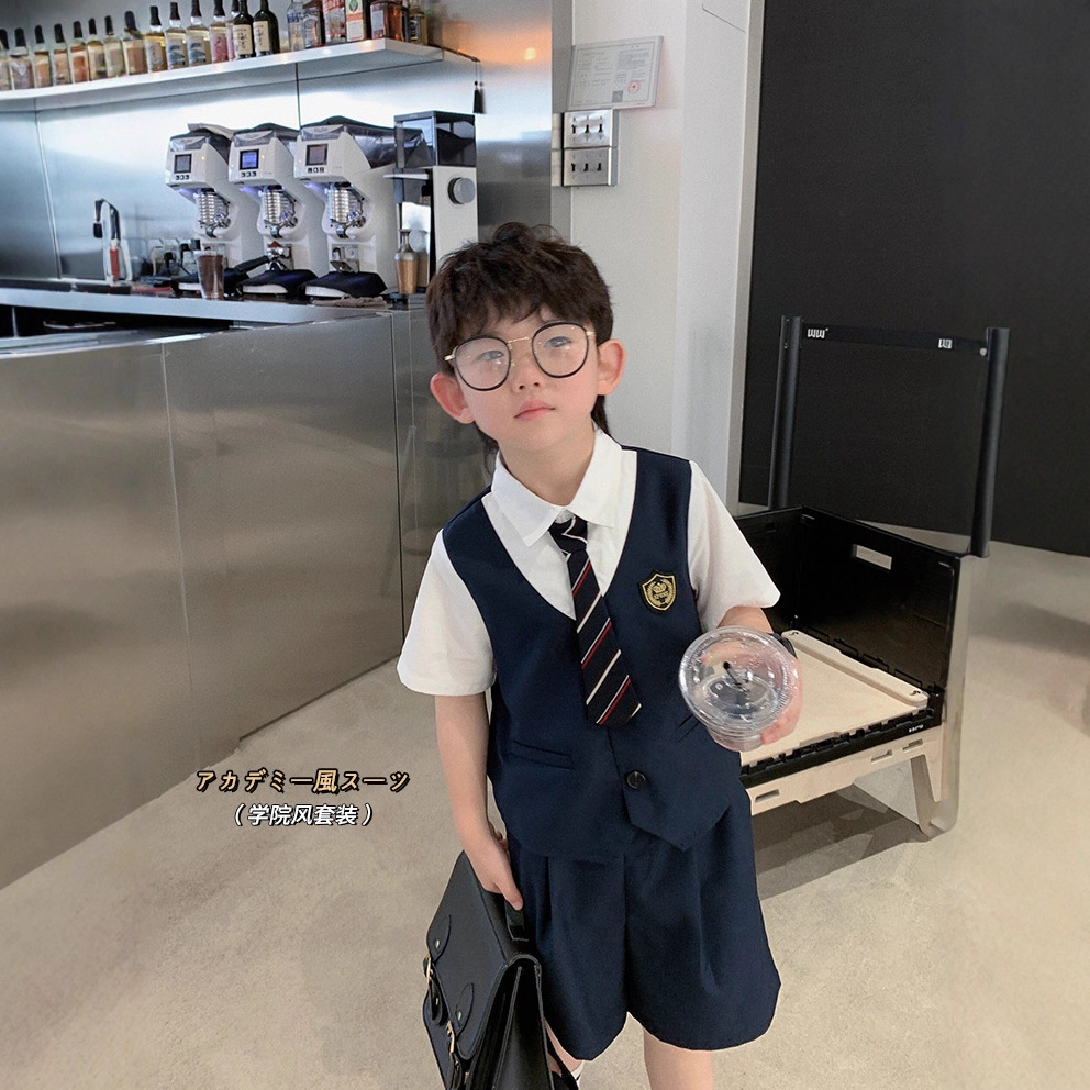Black and white short-sleeved suit, anti-wrinkle and non-fading