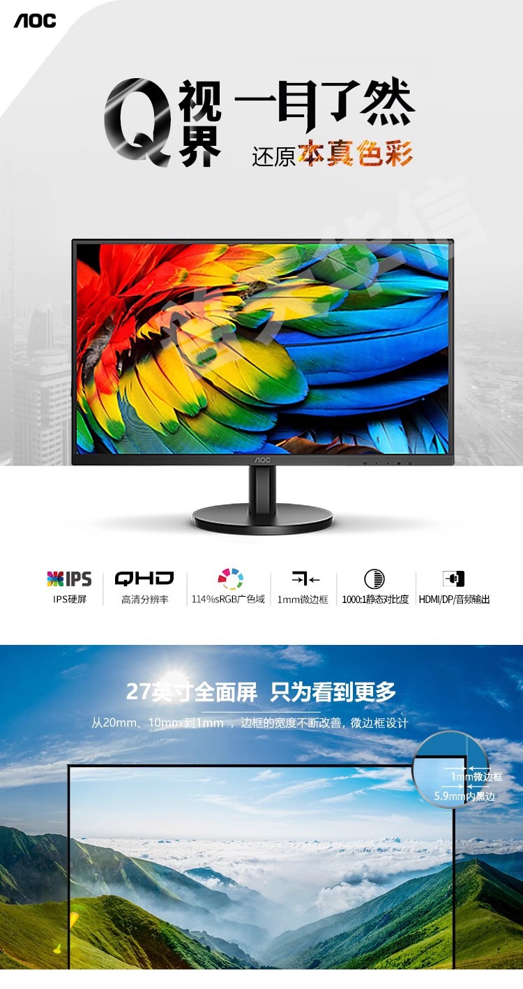 Aoc 27inch Hd 2K 100Hz Ips Screen Desktop Computer Home Office Lcd Monitor Screen
